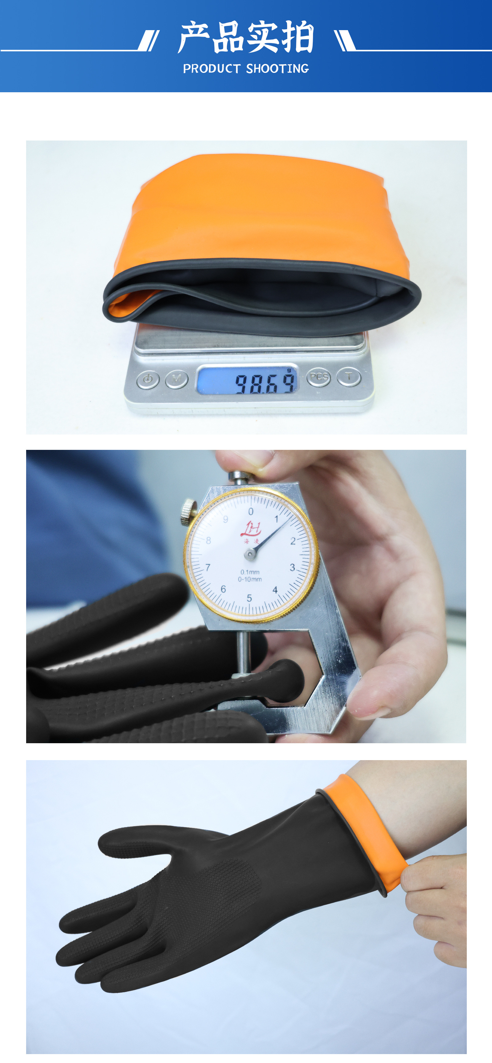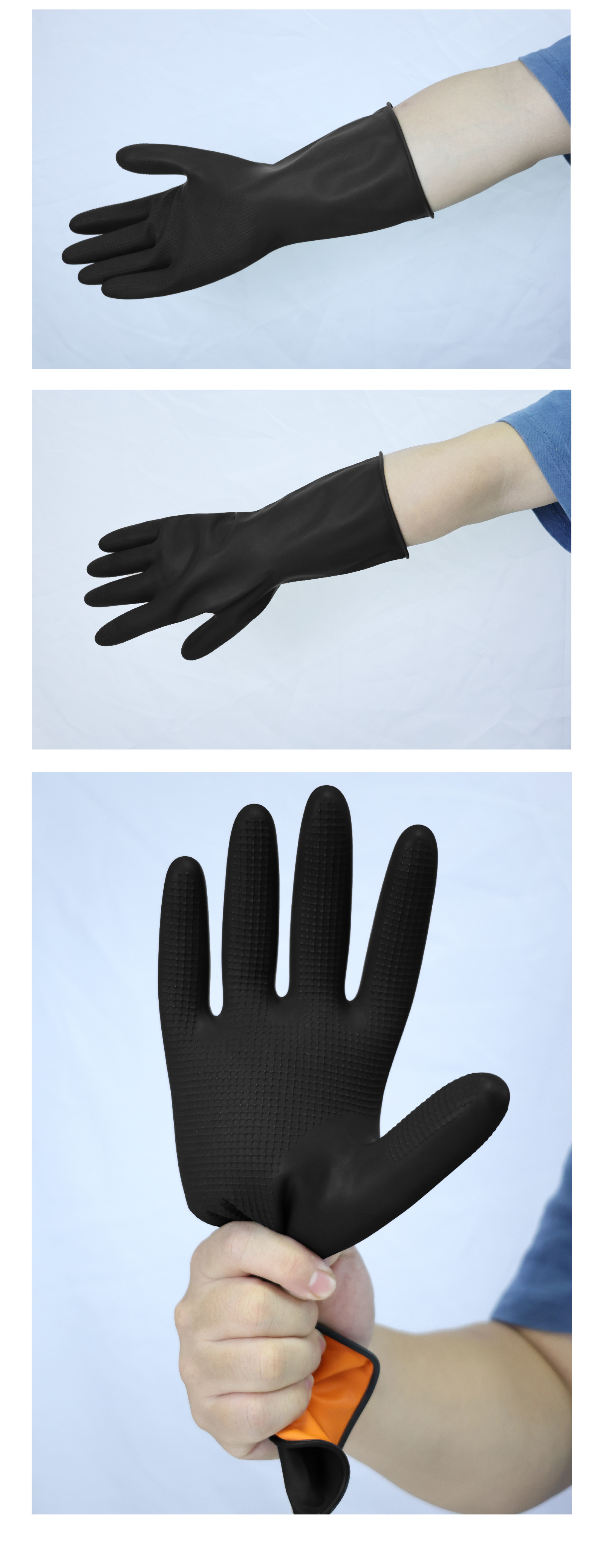 工場卸売り酸アルカリラテックス手袋黒色二重外黒内オレンジゴム工業化学労働保護手袋