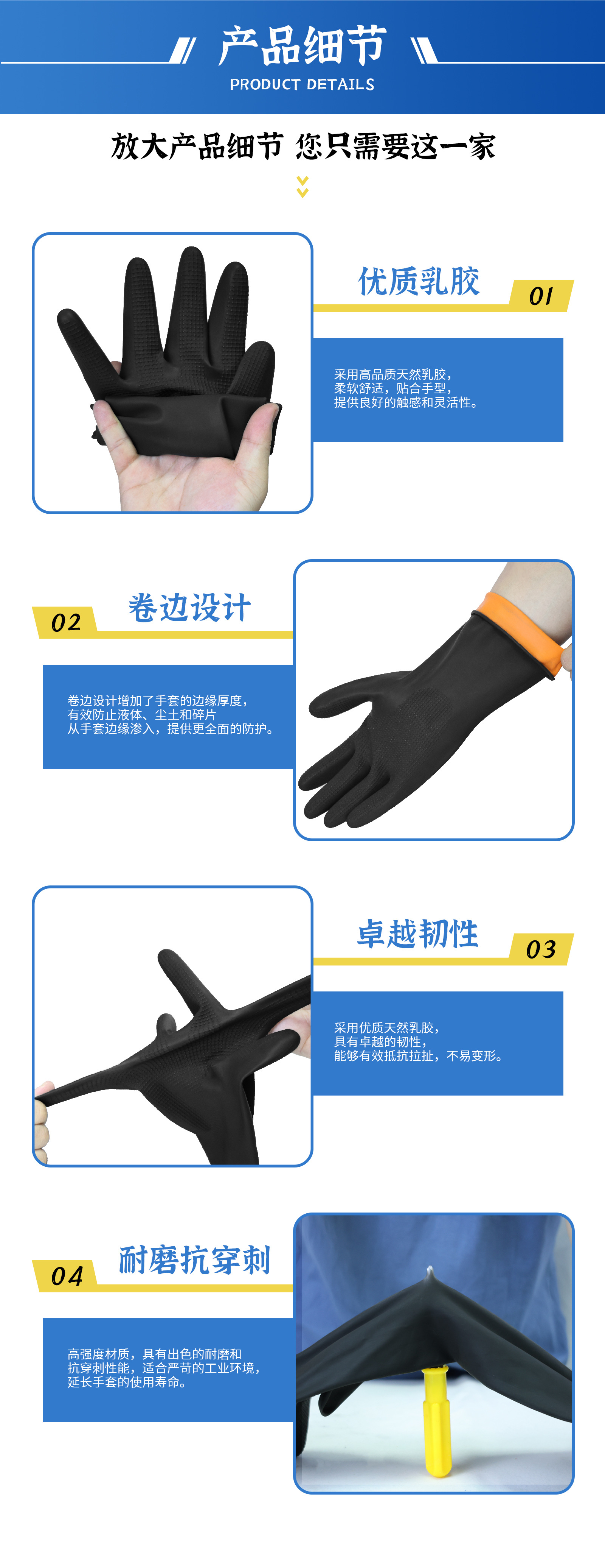 耐酸アルカリ手袋防食ゴム工業化学工業防水延長耐油耐摩耗ラテックスの仕事