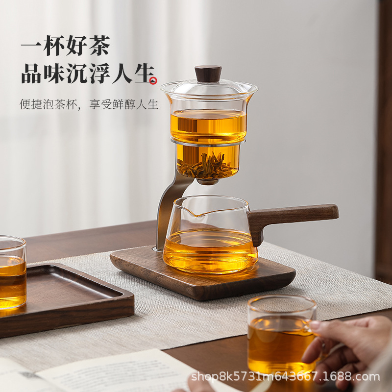 怠け者自動ティーメーカーティーポット茶水分離ガラスティーセットティーカップ家庭用カンフーティーカップ男性カップ