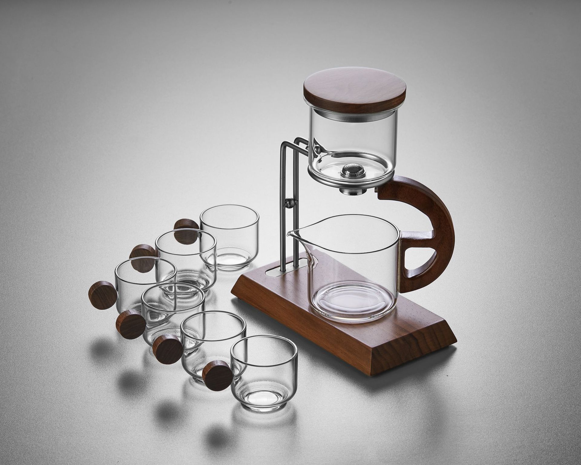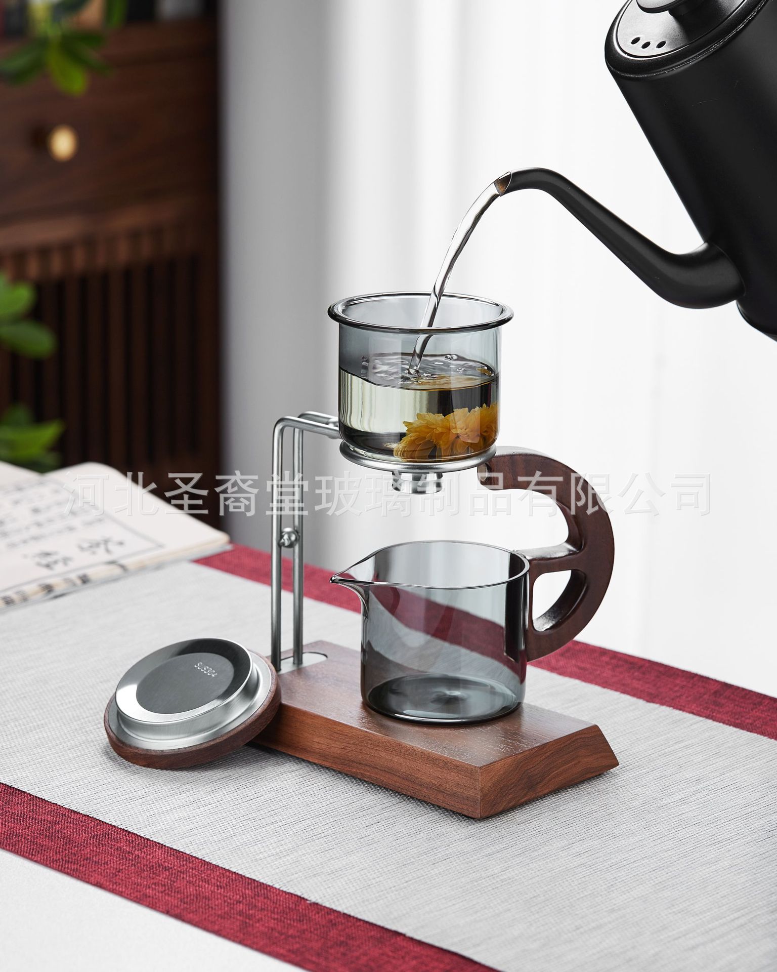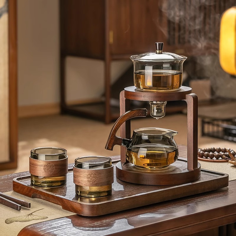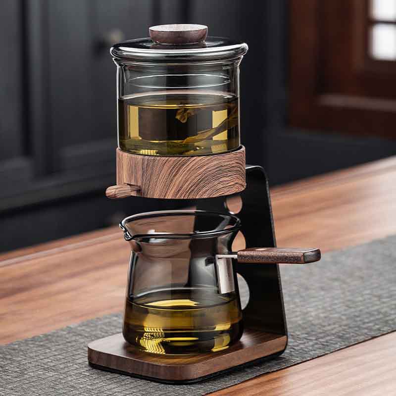 聖系堂ガラス怠け者自動茶器オフィスパーマ防止胡桃木沖茶器茶水分離磁気吸引セット