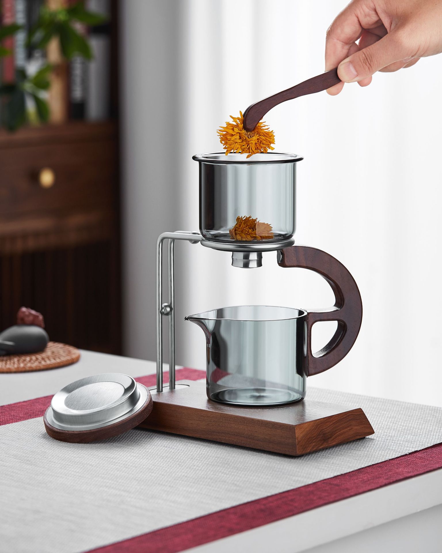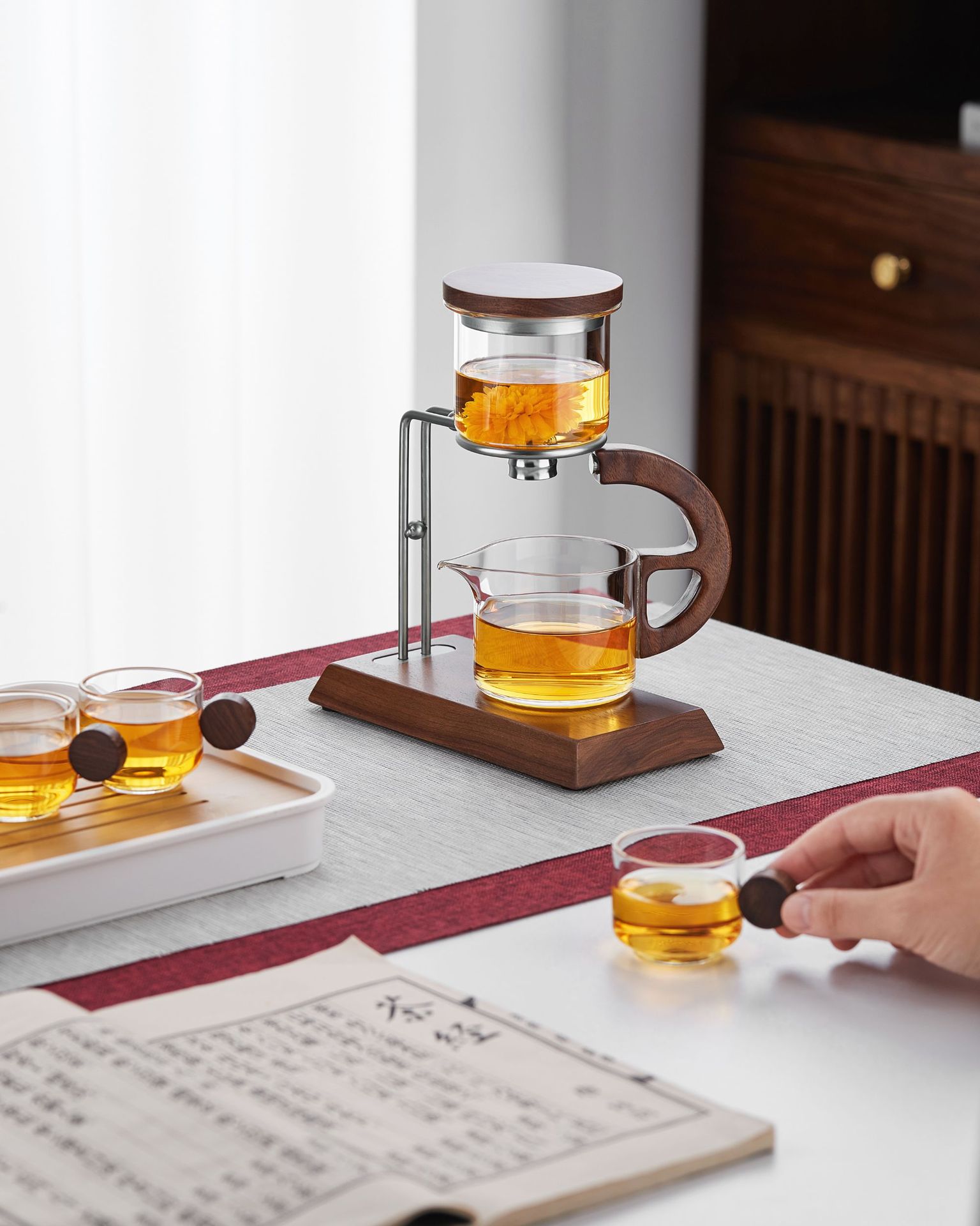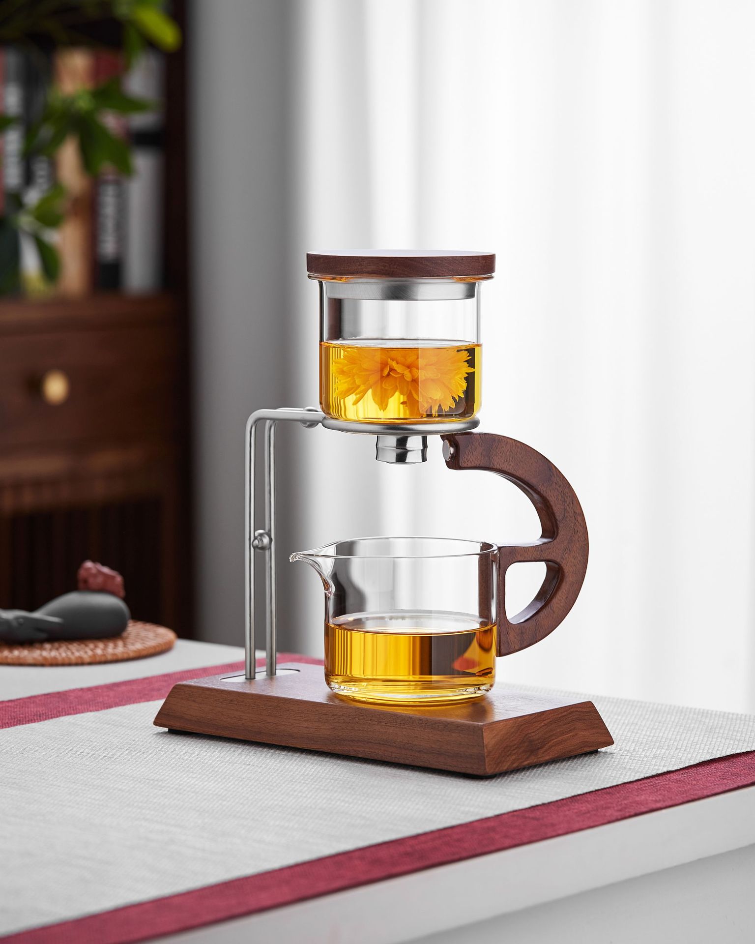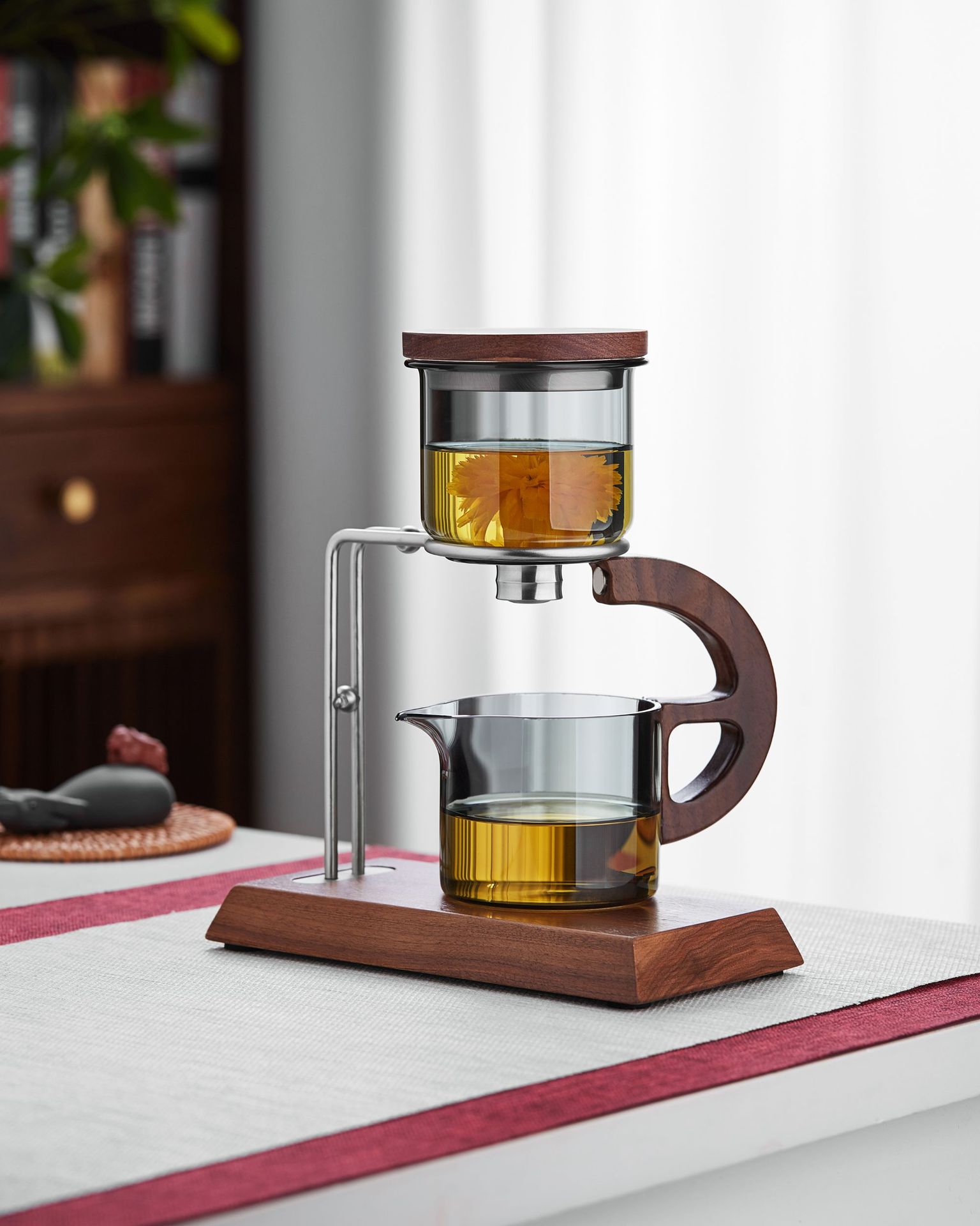 聖系堂ガラス怠け者自動茶器オフィスパーマ防止胡桃木沖茶器茶水分離磁気吸引セット