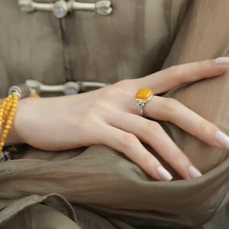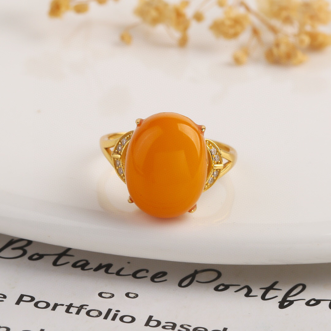 天然の古いミツロウの指輪S925純銀のの指輪のクロスボーダーの女性の高級な古いワックスは蜜を満たして鑑定の証明書を出すことができます。