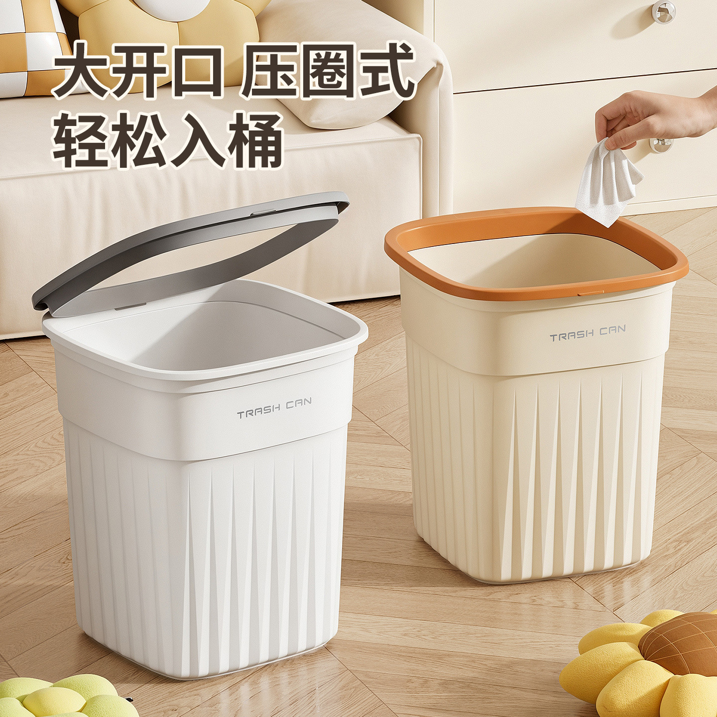 北欧风垃圾桶家用压圈无盖大号厨房客厅卧室卫生间办公室宿舍纸篓