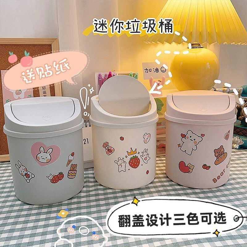 迷你桌面垃圾桶少女ins有盖办公室家用简约收纳盒