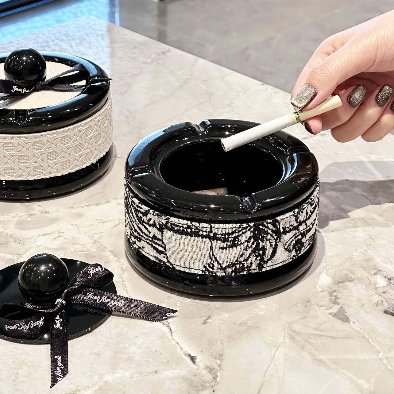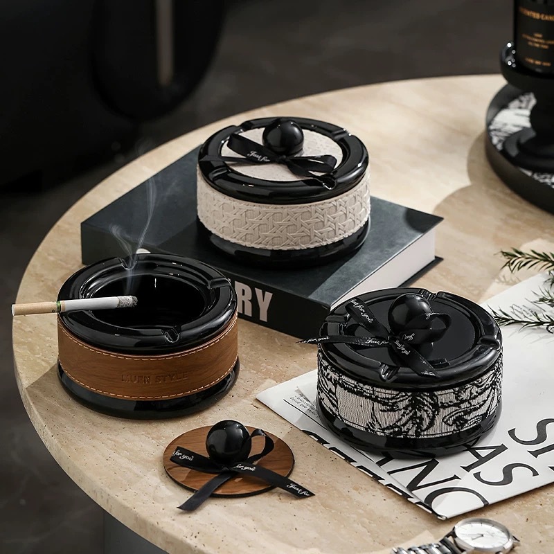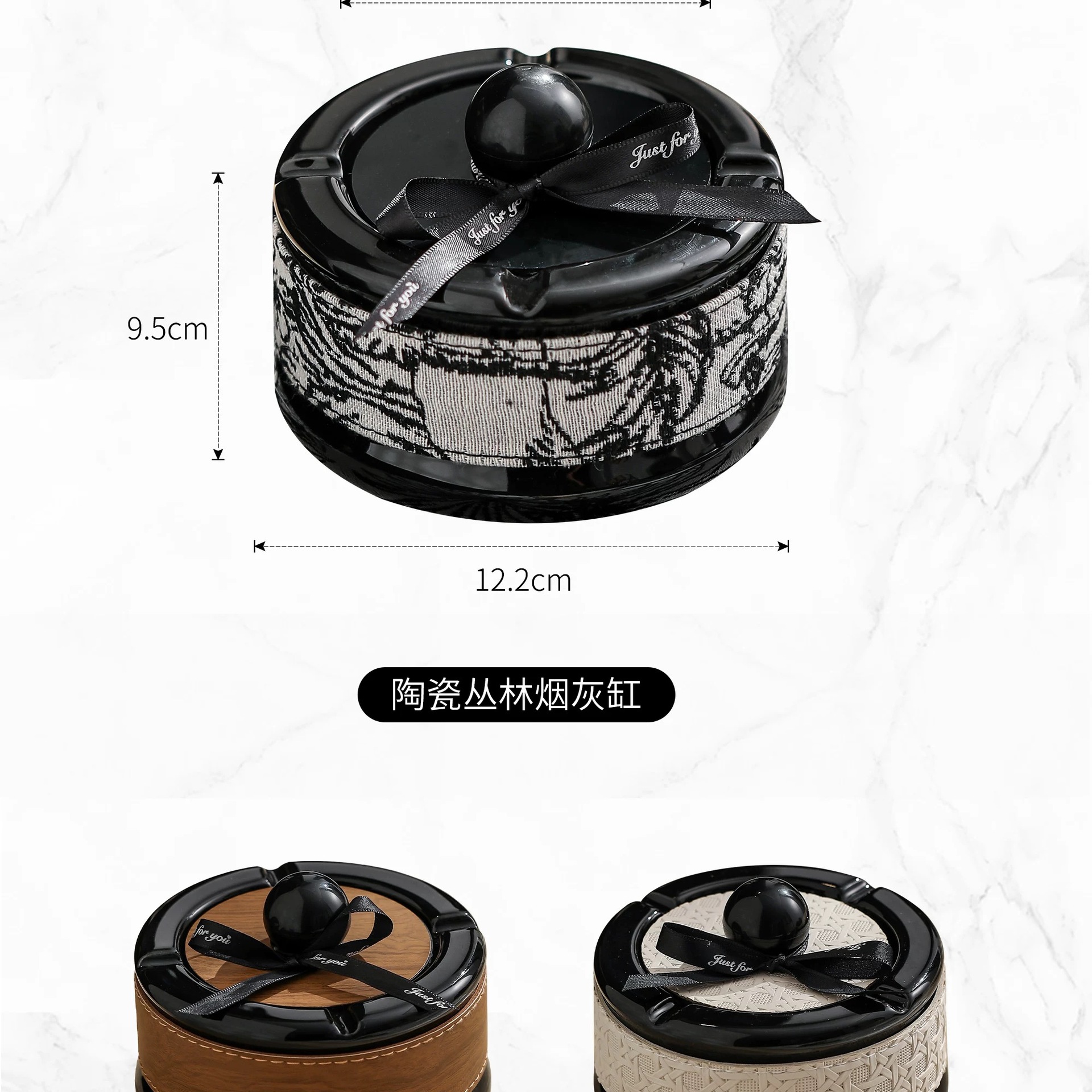 北欧風の軽い豪華な陶磁器の創意的な灰皿は皮革を持って家庭用の高級感のある灰皿を飾ります。