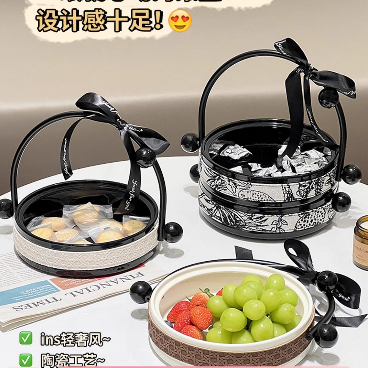 新年果盘轻奢感水果盘家用客厅茶几摆件干果盒手提糖果零食果盘