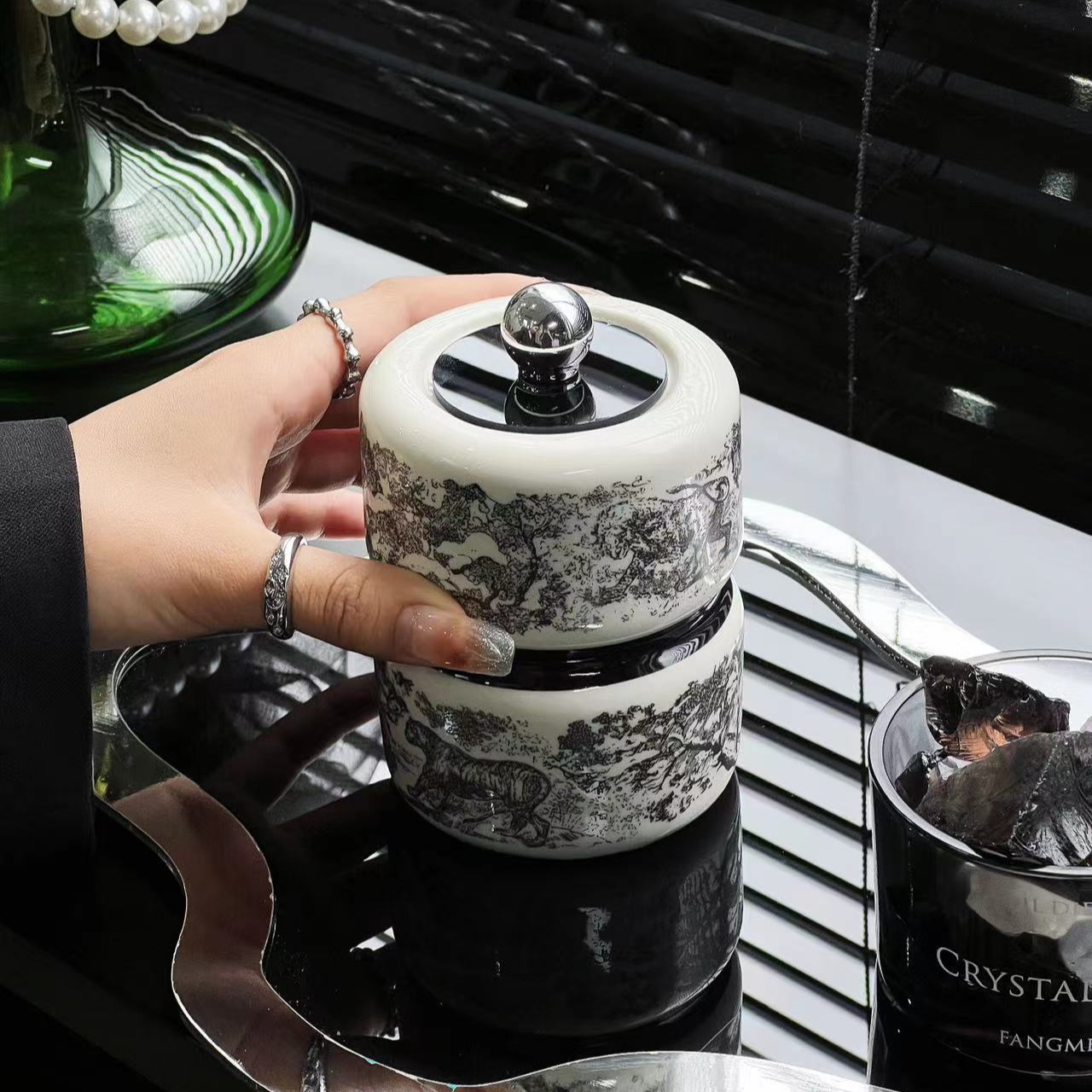 MUEN限定中古風黒虎山林楊枝筒客間高颜値収納小衆陶磁家庭用プレゼント