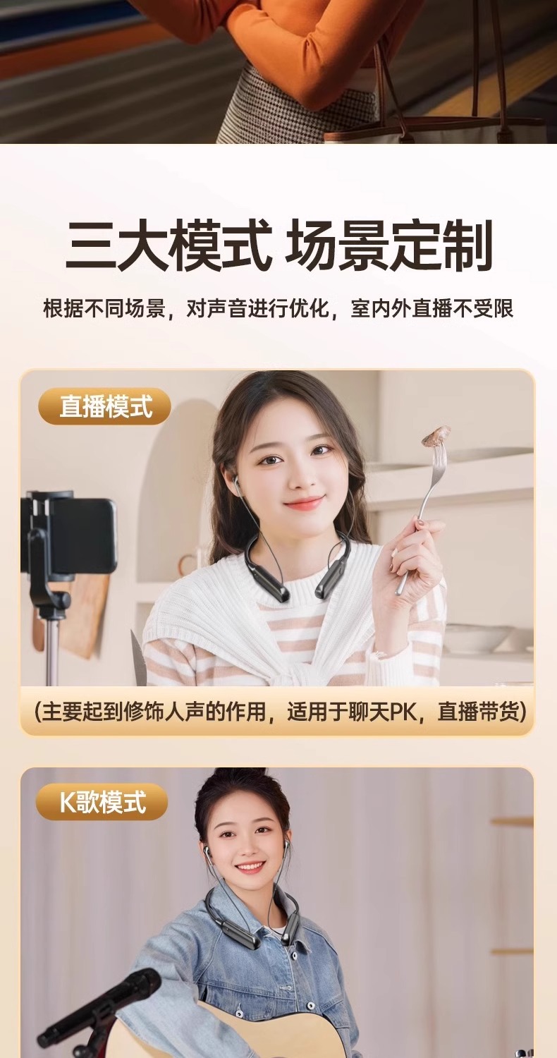 新型619無線ブルートゥース生放送音カードヘッドセット一体機携帯型首掛け歌屋外携帯電話通用