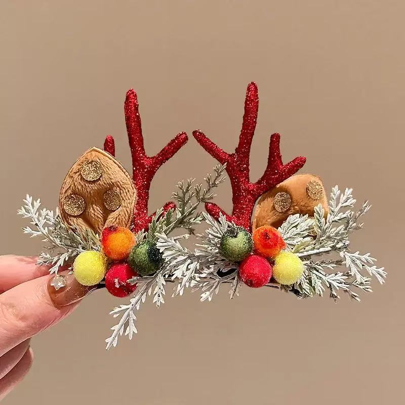 圣诞节儿童鹿角发夹节日氛围感侧边夹发卡发饰可爱小女孩夹子头饰
