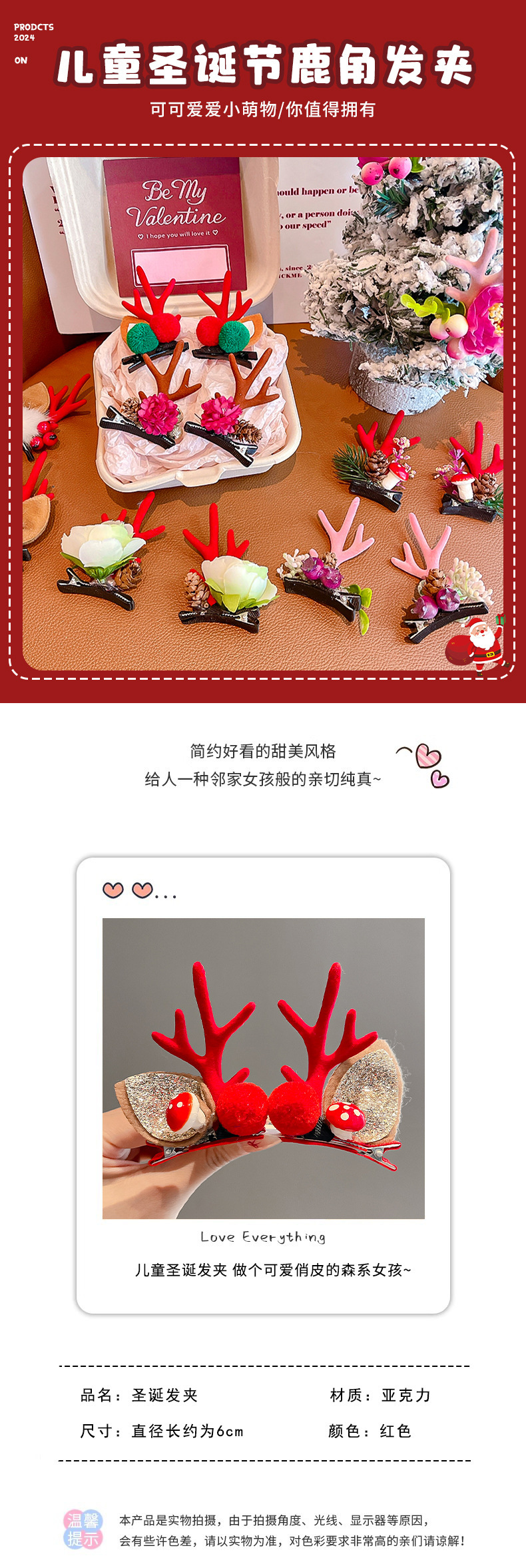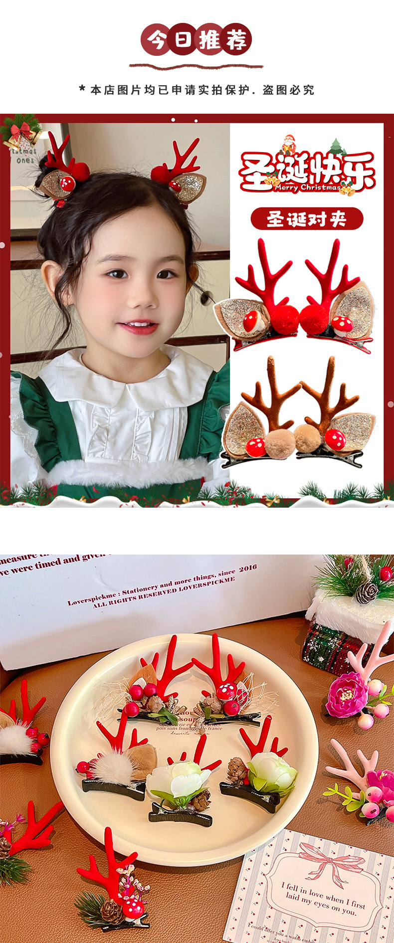 2024新型クリスマス子供が髪を挟んでかわいいネット赤赤ちゃんが髪を砕く前髪がヘラジカの髪を挟んで卸売り工場を挟む
