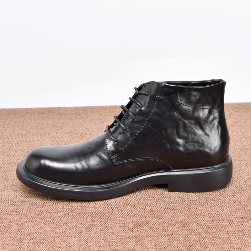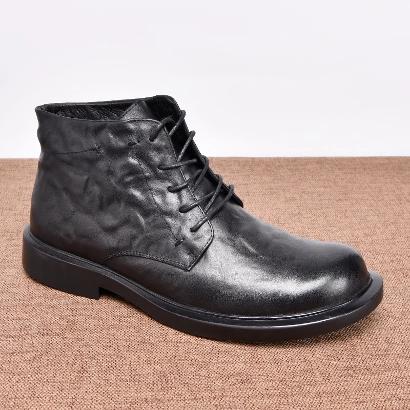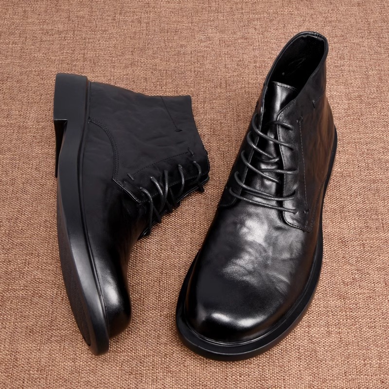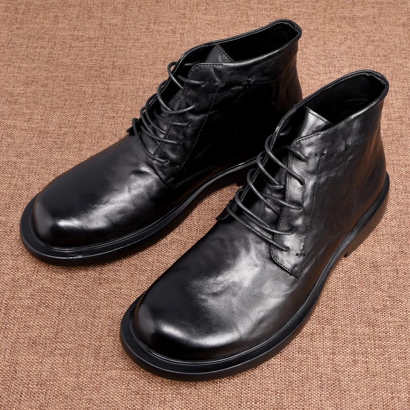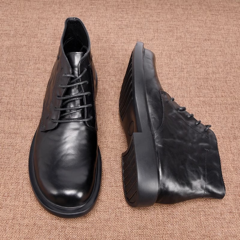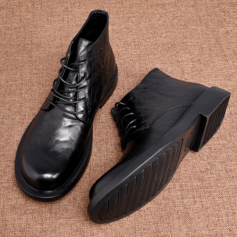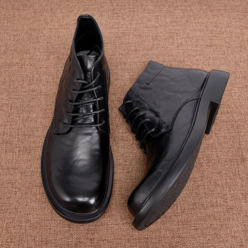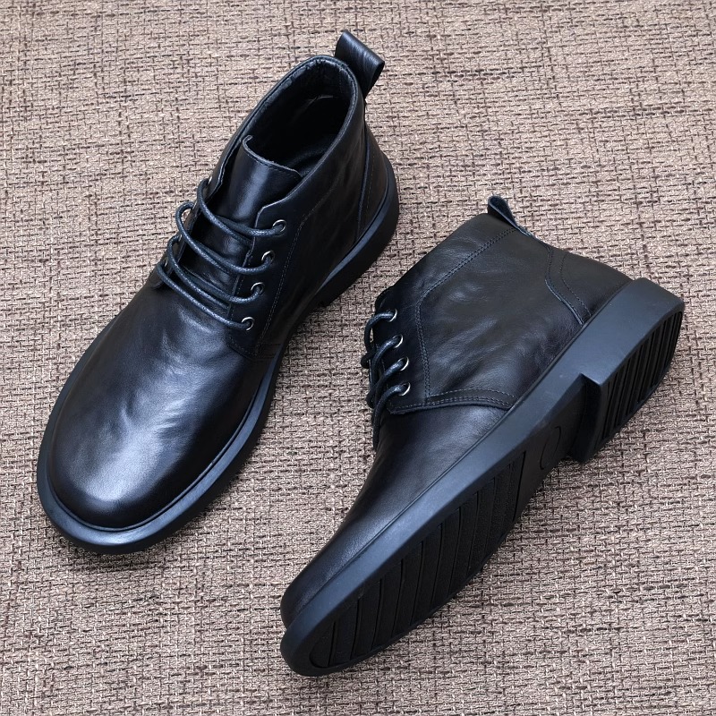 本革ビジネスハイカットレザーシューズメンズ秋用レースアップマーティンブーツ厚底ソフトレザーカジュアルミッドカット冬用裏起毛レザーブーツ