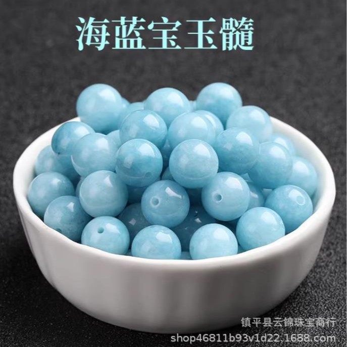 海蓝宝色玉髓圆珠子散珠配件饰 diy海蓝宝散珠项链女耳坠饰手工串