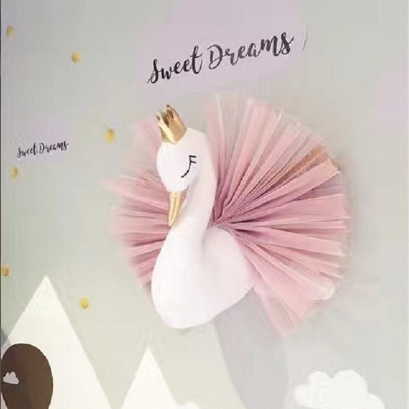 子供部屋ごっこ遊び用ソフトデコレーション、金色の王冠と白鳥の壁掛け、夢のようなプリンセス壁飾り