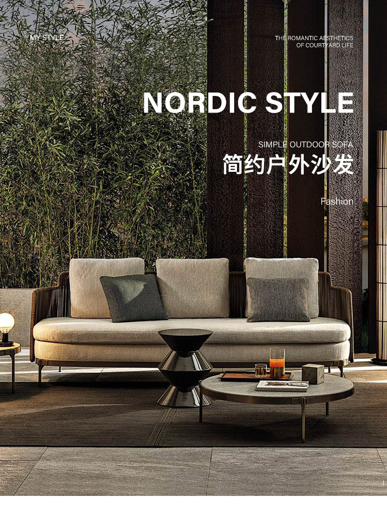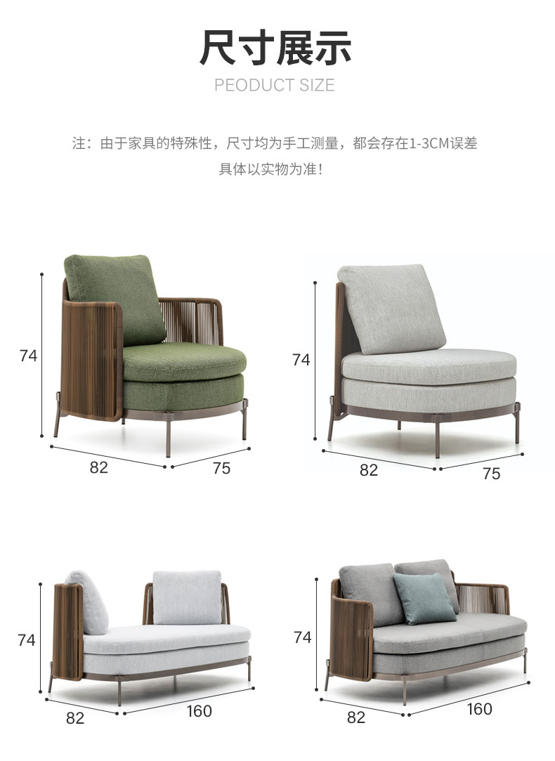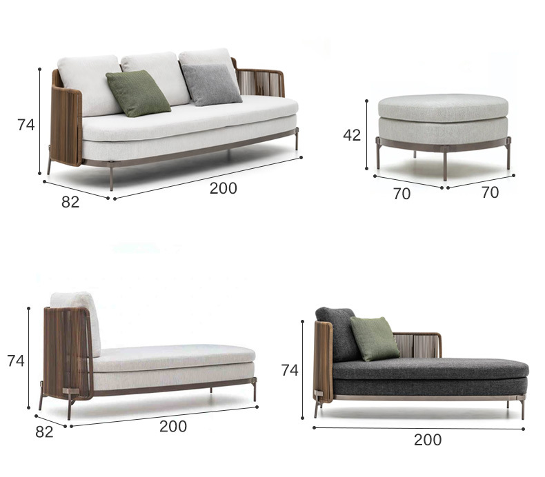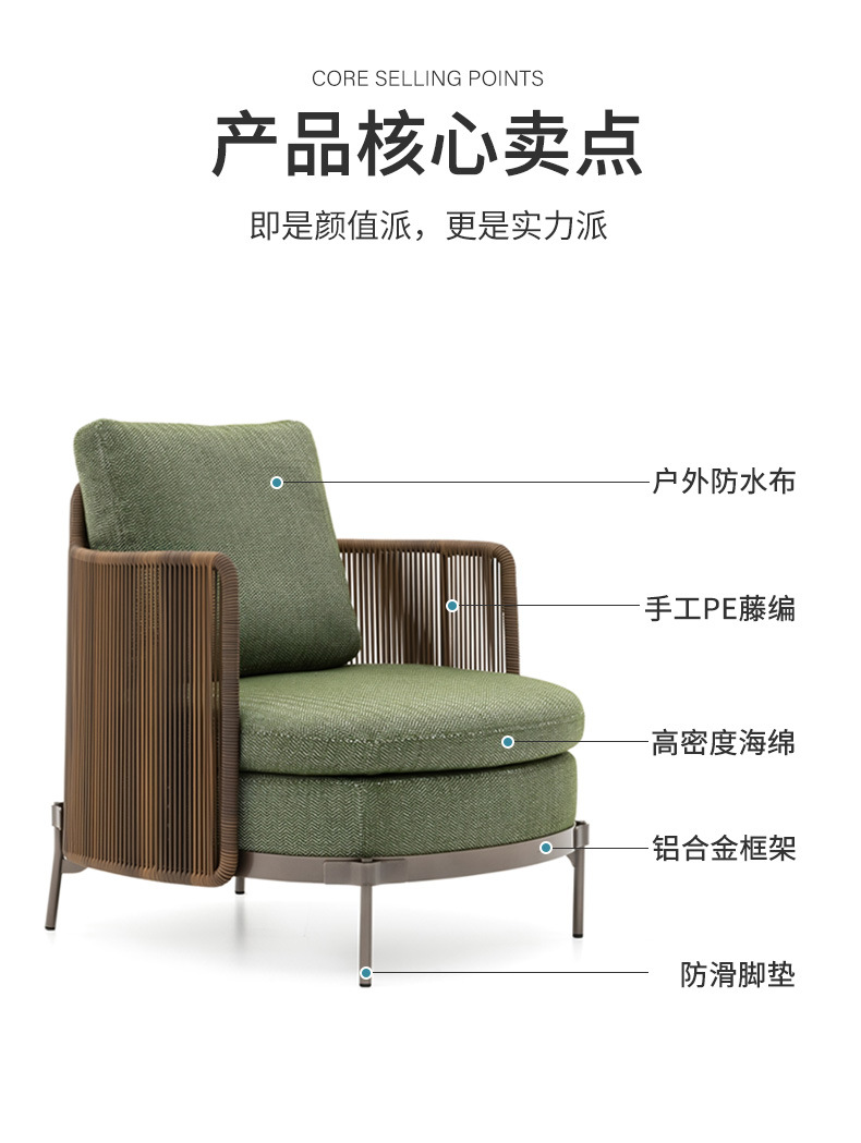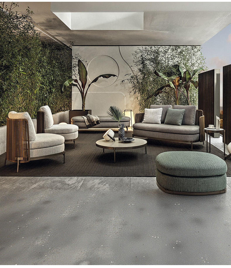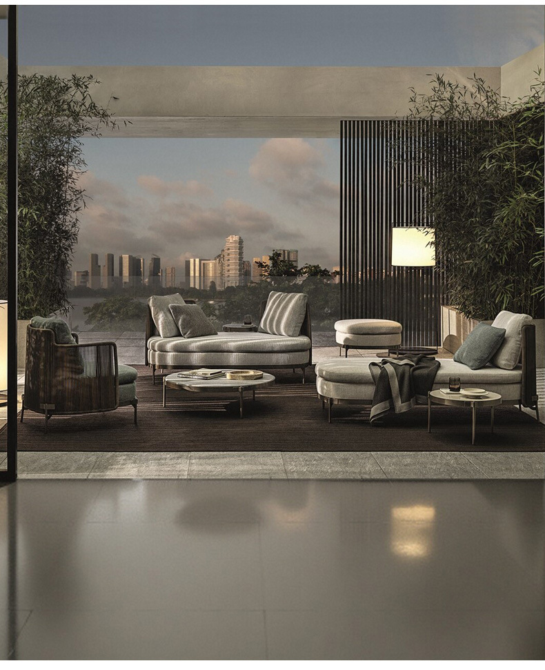 北欧屋外ソファ防水日焼け止めヴィラガーデンバルコニー家具モデルルーム中庭屋外レジャー籐ソファ