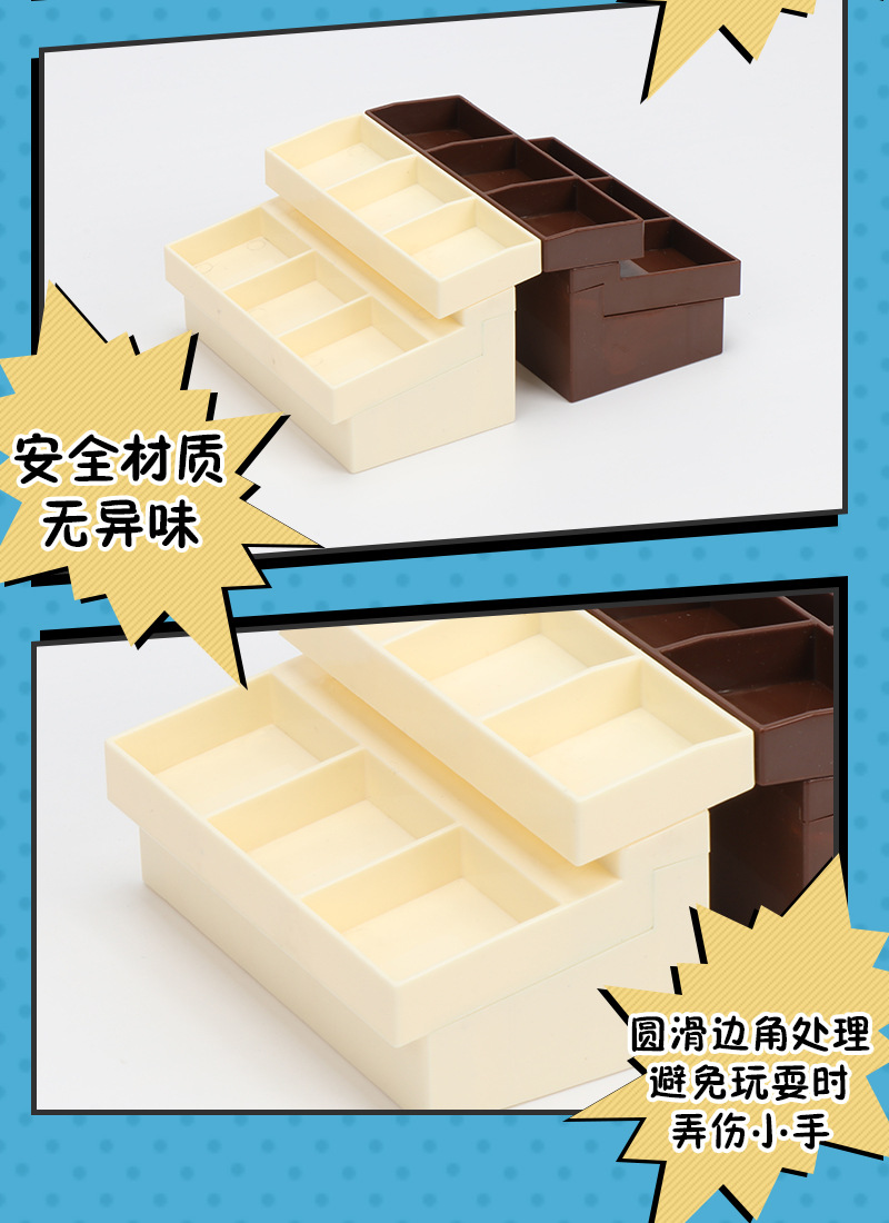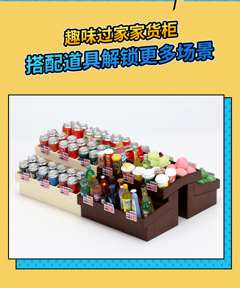立体スーパーの缶をシミュレーションして、子供のままごとの模型のおもちゃを遊んでいます。