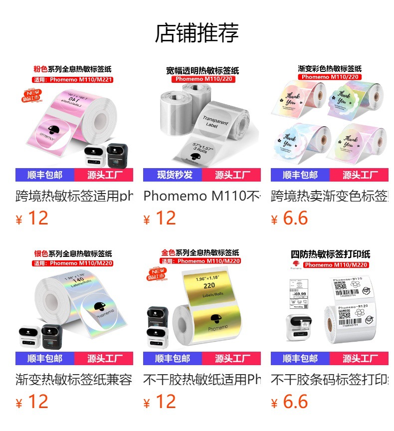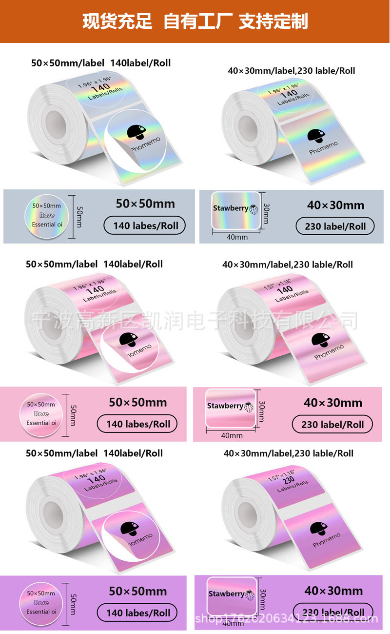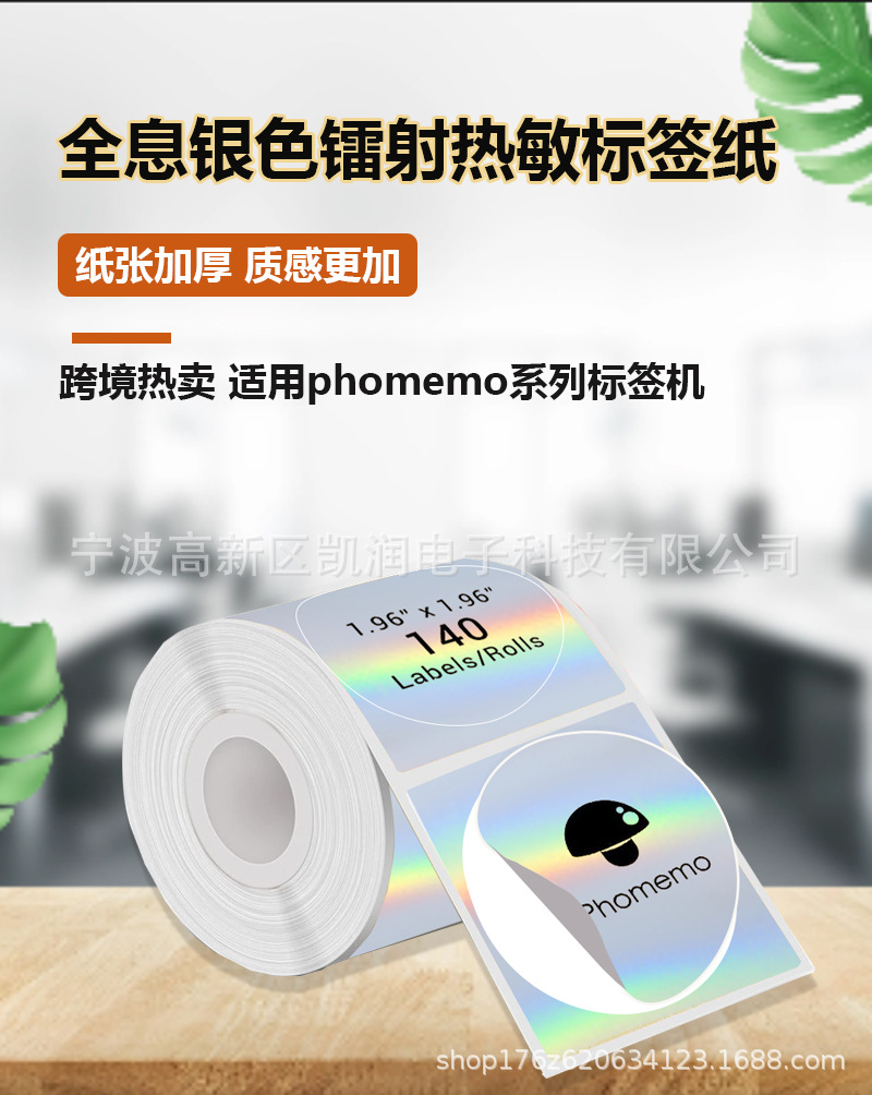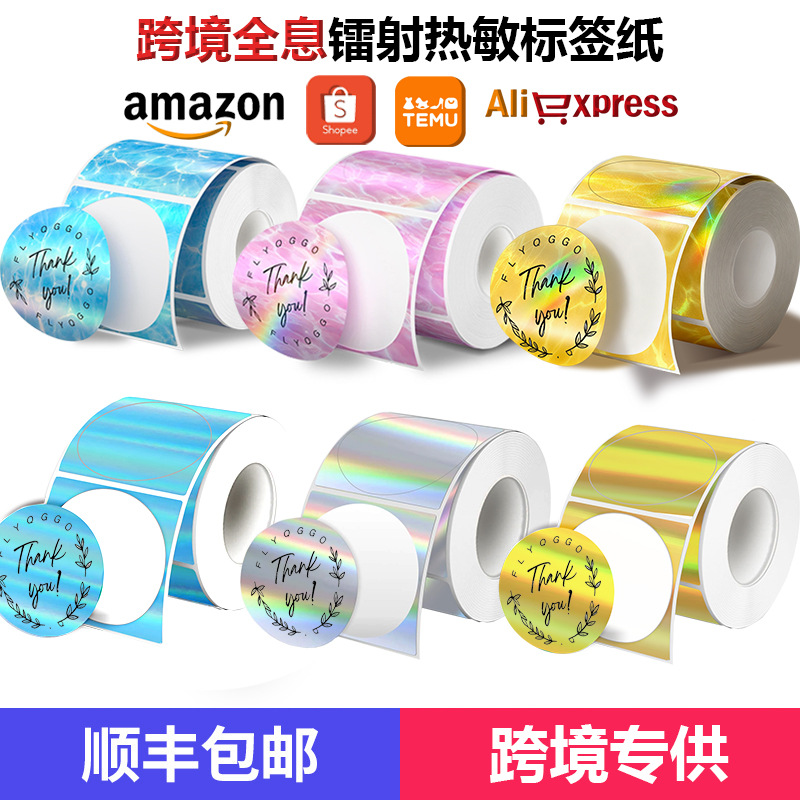 跨境5色循环热敏标签纸兼容Phomemo M110/220全息镭射热敏打印纸