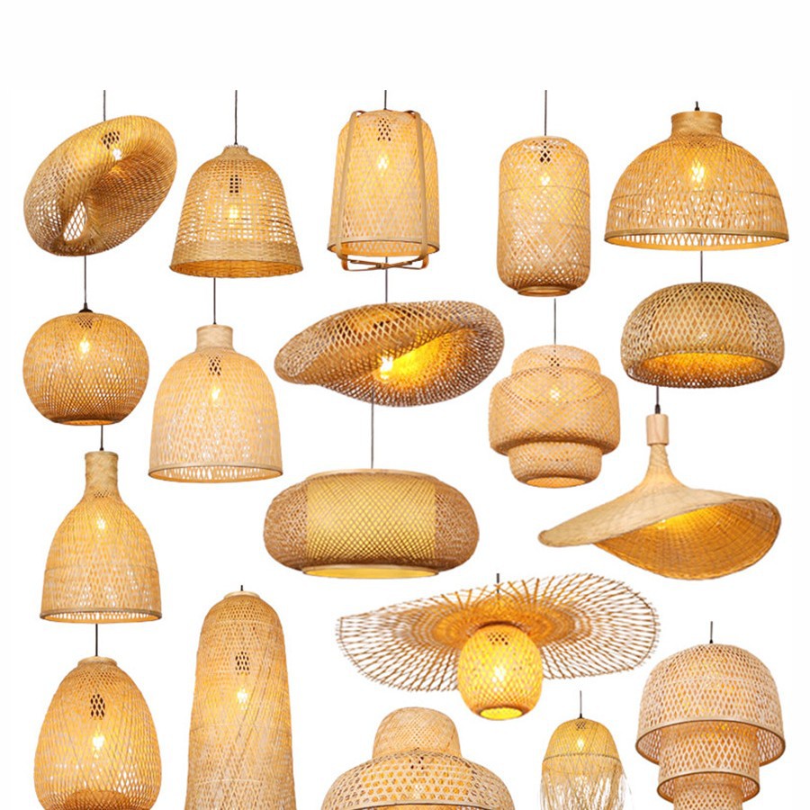 国境を越えて人気のある手作り竹編みシャンデリア中国式装飾レストラン寝室名宿茶室レトロ田園スタイル照明器具