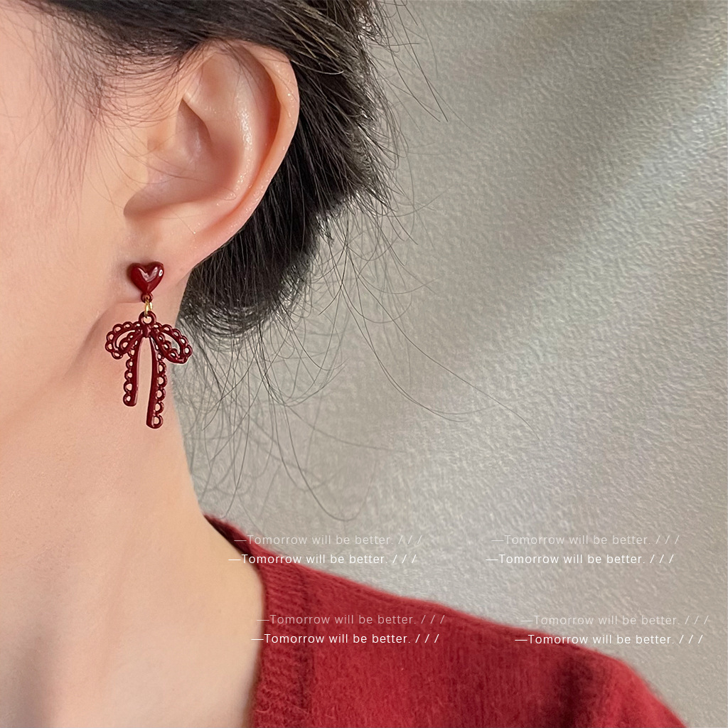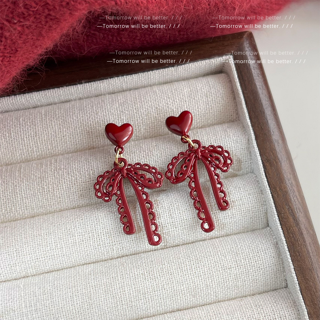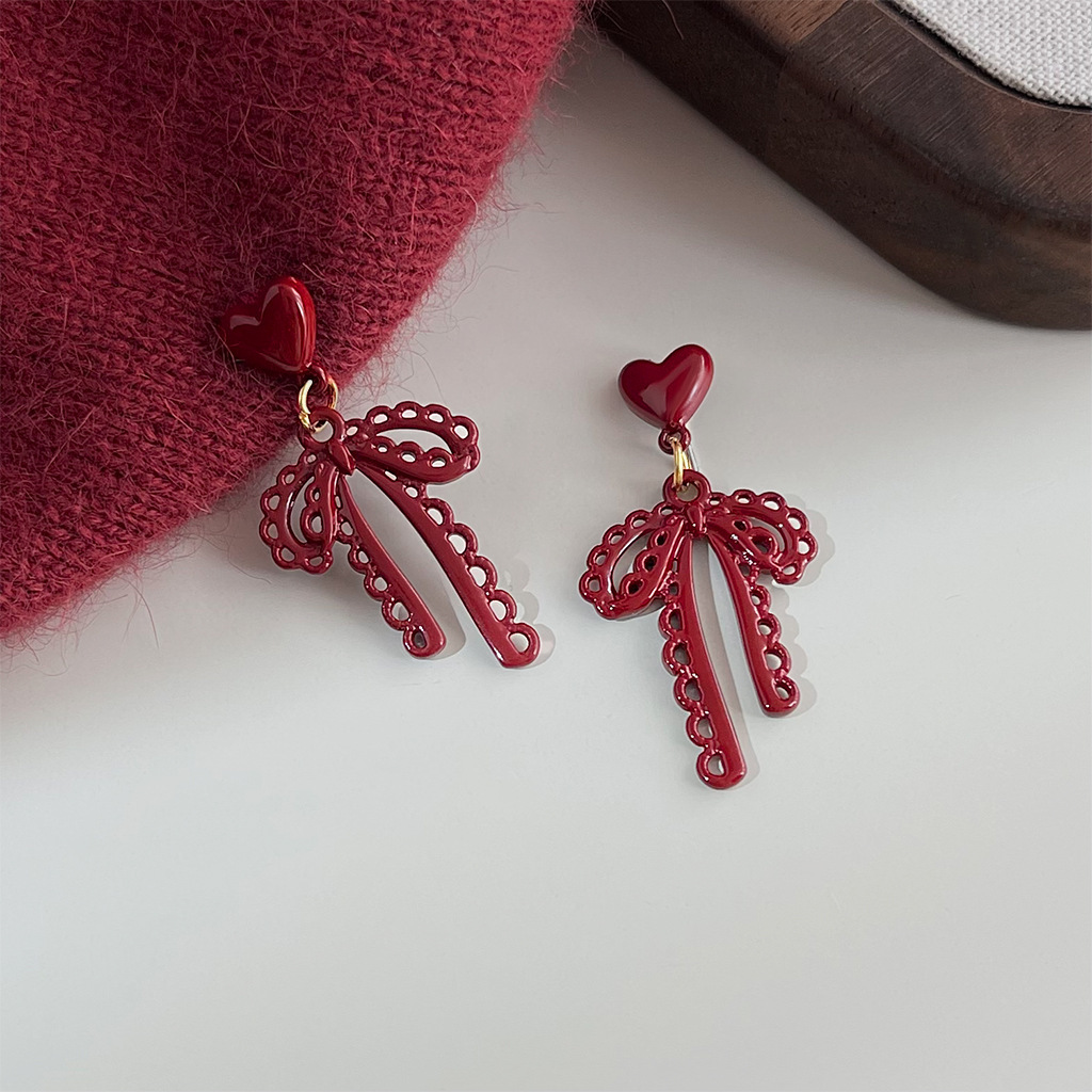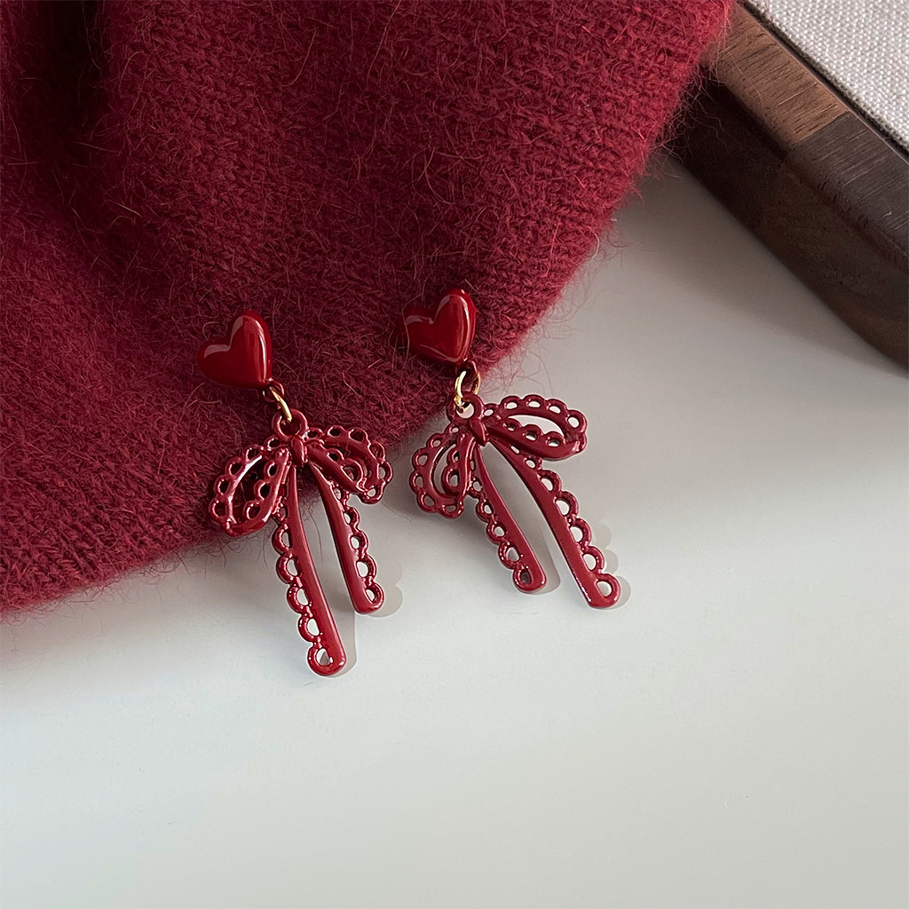 フランスのレトロな透かし彫りのレースの蝶結びのイヤリングの女性の大衆の甘い気質のピアス