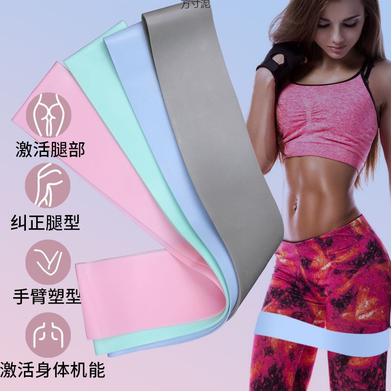 ヨガの弾力帯の抵抗はフィットネスの女性の環状の弾力の輪を持っています。
