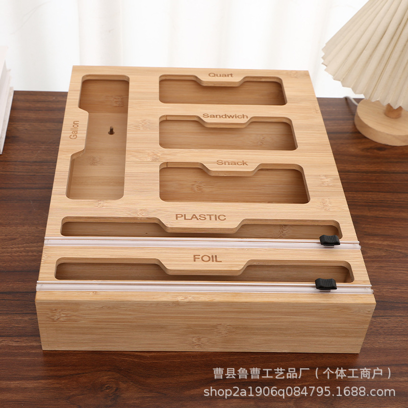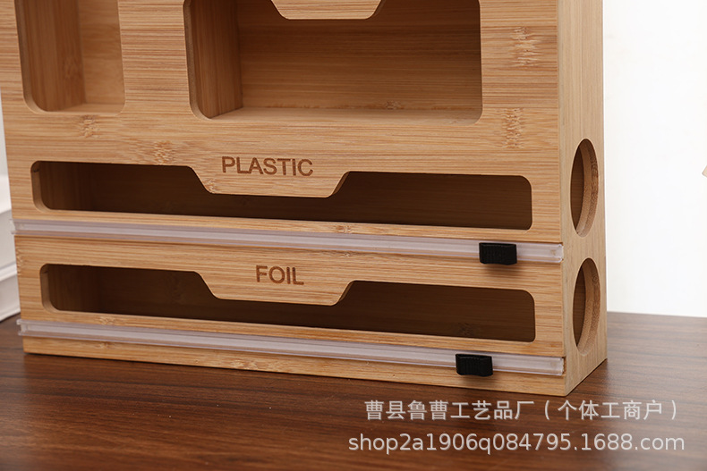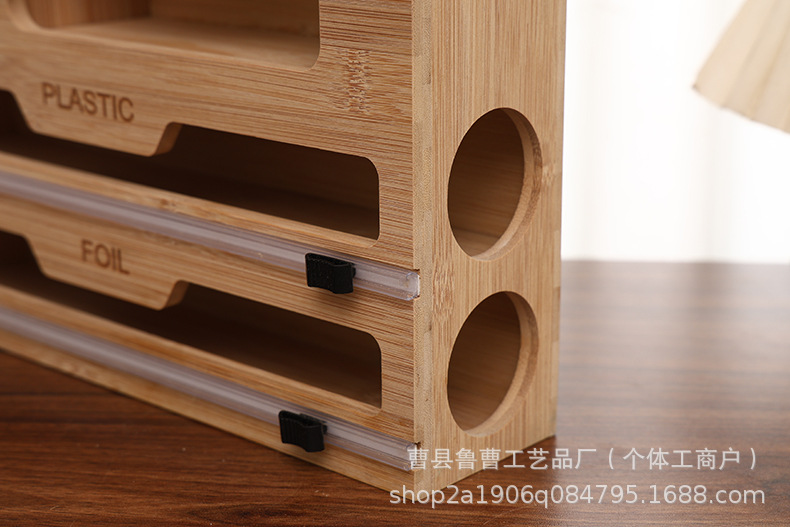 木製ラップカッターキッチン竹木製壁掛けラップボックス家庭用ラップカッター収納ボックス