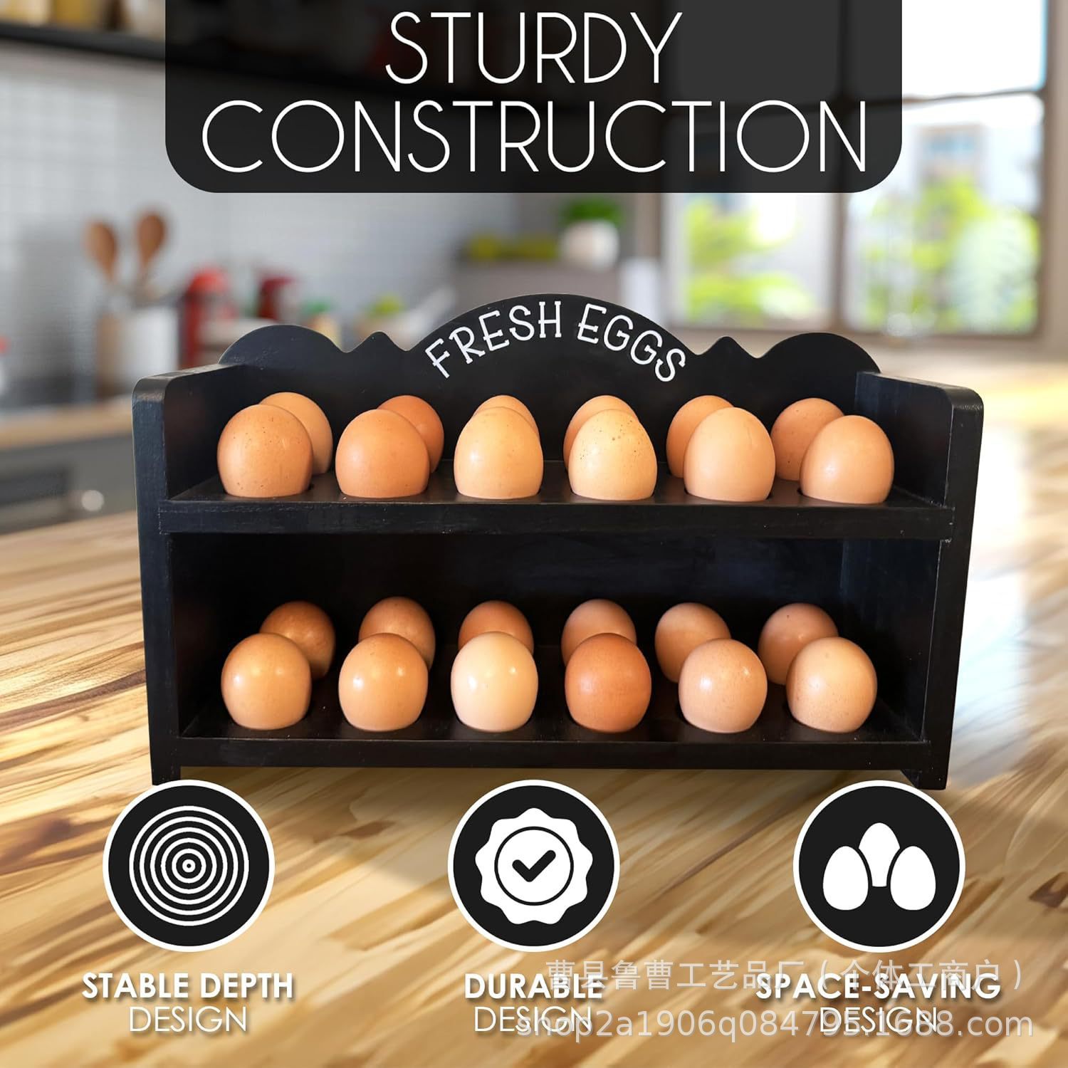 クロスボーダー木製卵ラック二層卵トレイ収納ラックポータブルキッチンデスクトップアヒルの卵アヒルの卵卵ラック