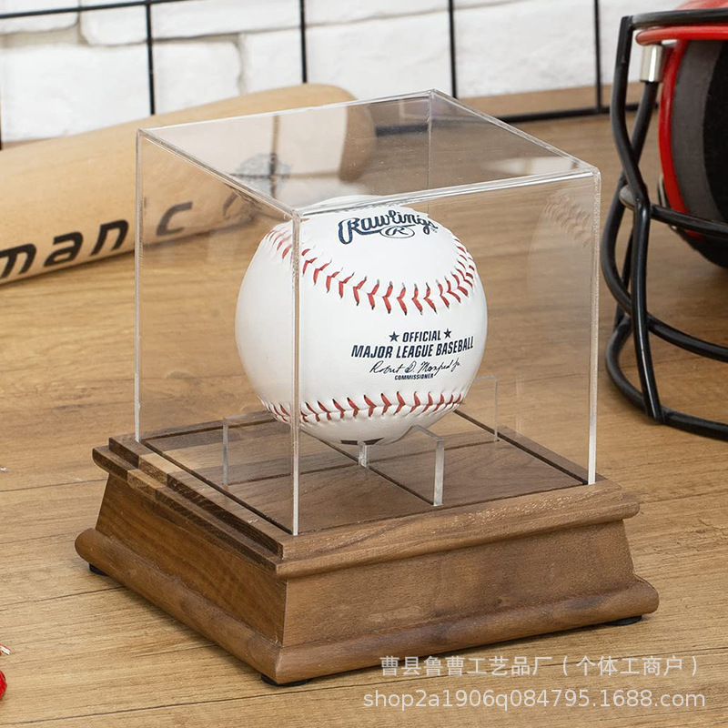 木製正方形野球ディスプレイボックスアクリル透明野球収納ボックス取り外し可能なアイテム収納ボックス