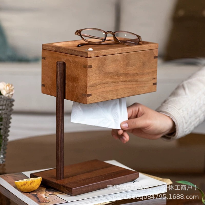 無垢材デスクトップ垂直ティッシュペーパー収納ボックス木製ティッシュペーパーボックスライト高級ホテルとB&B多機能ティッシュペーパーボックス