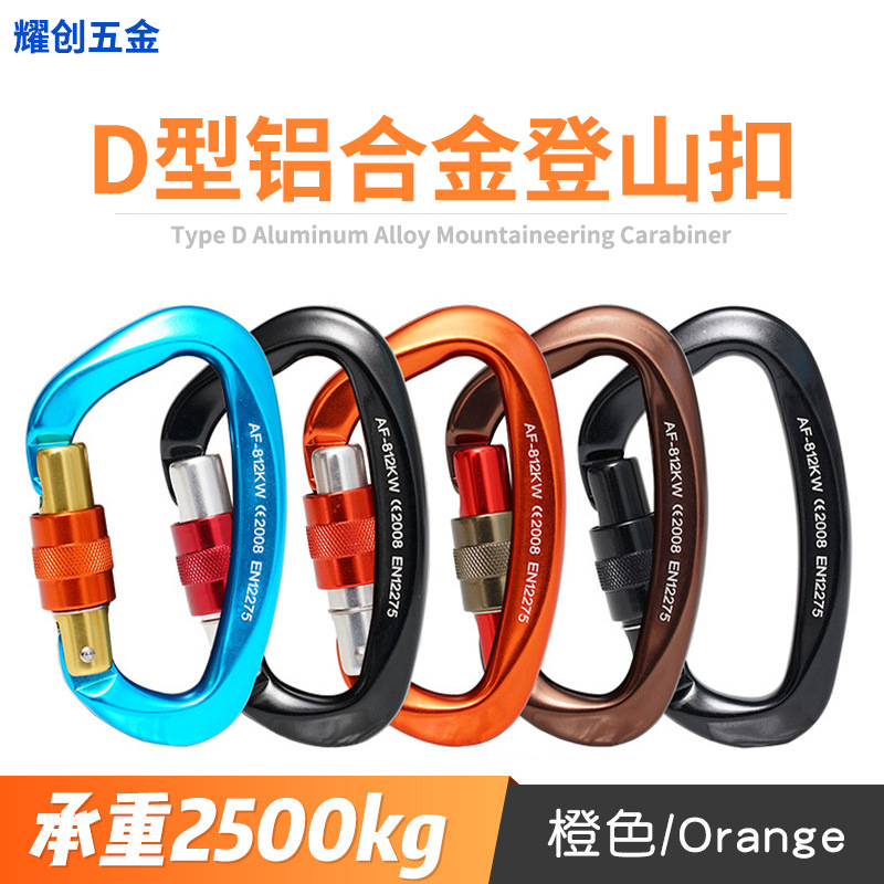 户外攀岩主锁D型铝合金登山扣25KN丝扣锁高空作业救援装备快挂