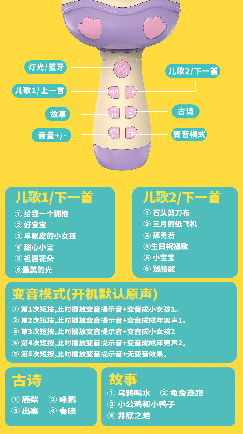 儿童小话筒音响一体麦克风宝宝唱歌机无线蓝牙唱歌婴幼儿玩具女孩