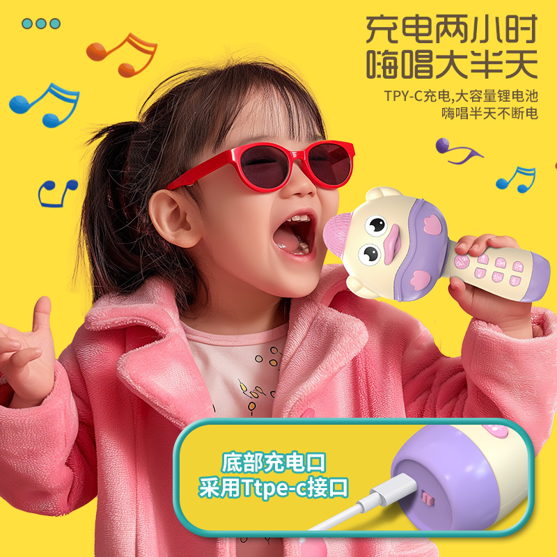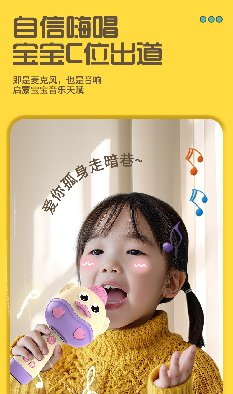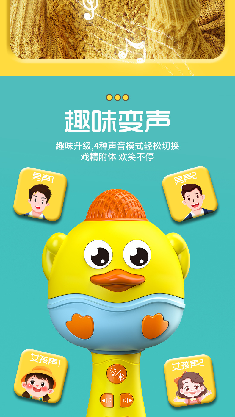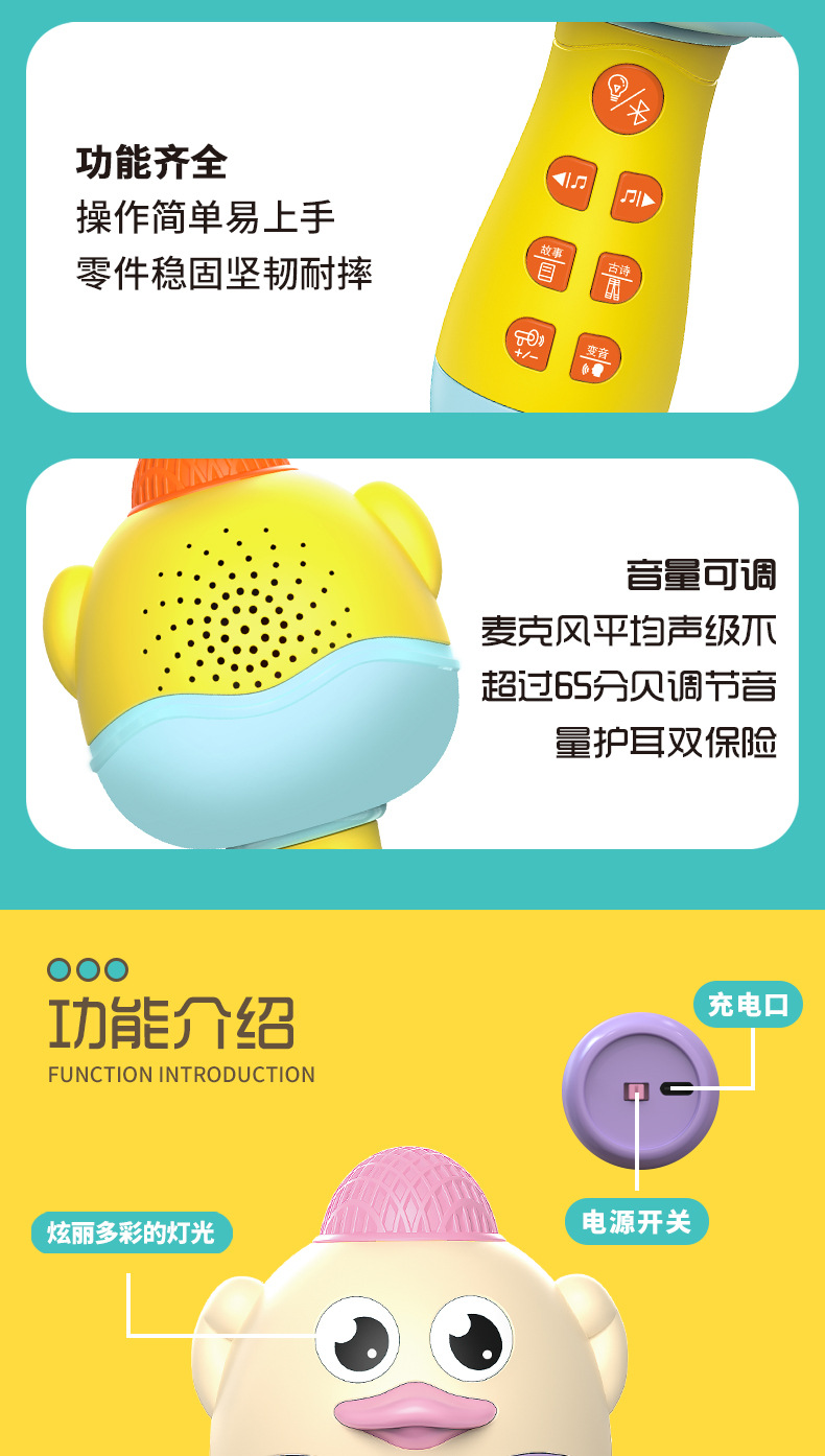 儿童小鸡话筒仿真麦克风音响无线唱歌蓝牙卡拉ok音乐宝宝早教玩具