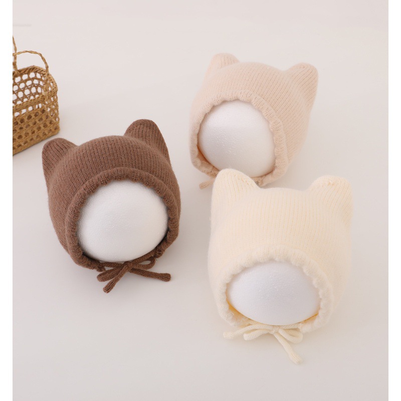 ベビーニット帽子秋冬乳幼児保護ハロゲン帽子かわいい猫耳赤ちゃん保温毛糸保護帽子