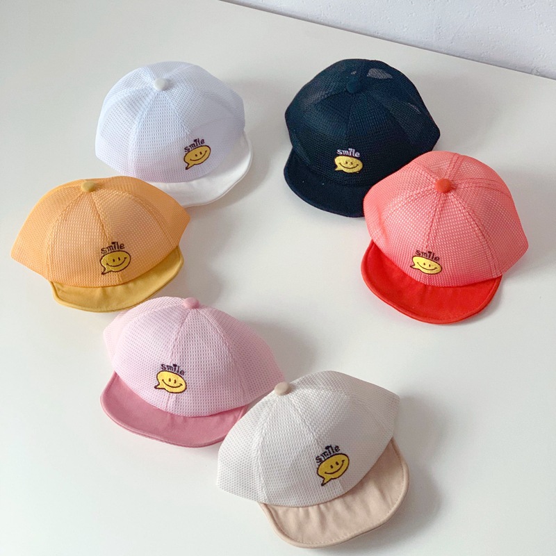 春の夏の赤ちゃんのアヒルの舌の帽子の薄いタイプの赤ちゃんの帽子のかわいい笑顔の網の目の通気性の子供の柔らかい軒の日よけの帽子の潮
