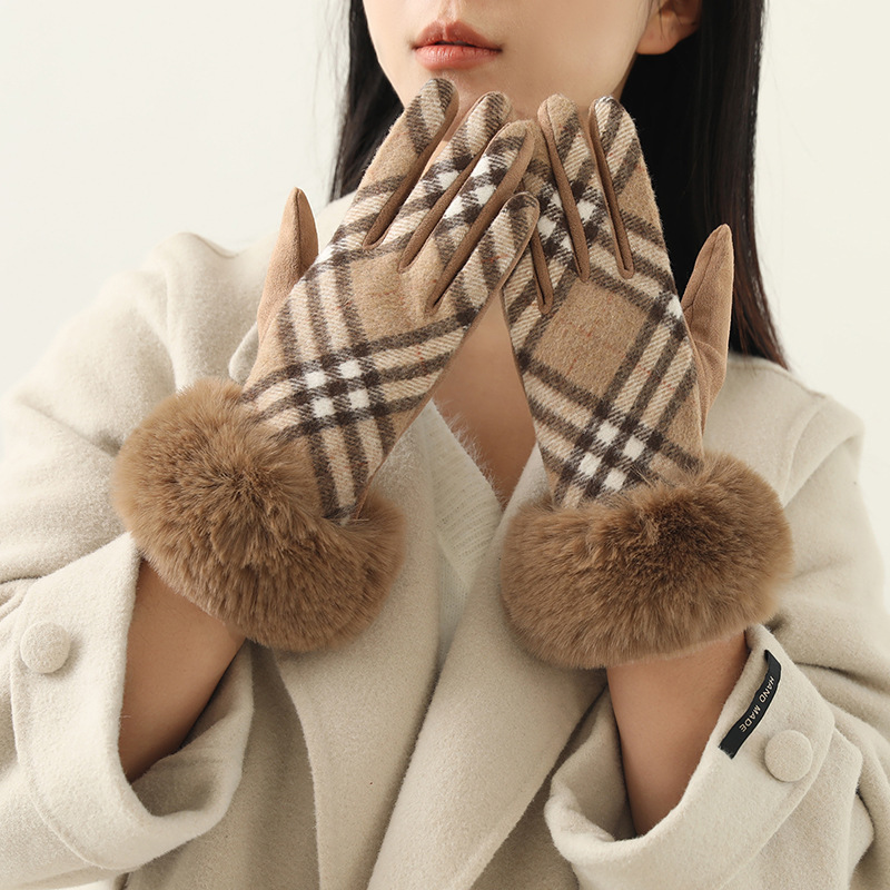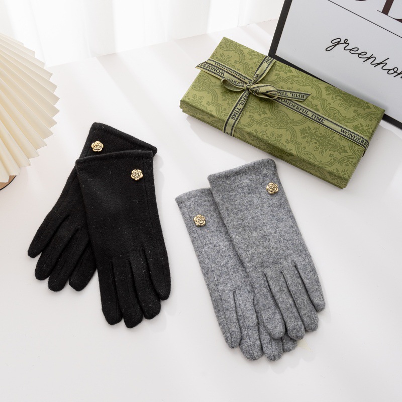 冬手袋保温女性レトロ小香風花ベルベット防寒自転車防風タッチパネル