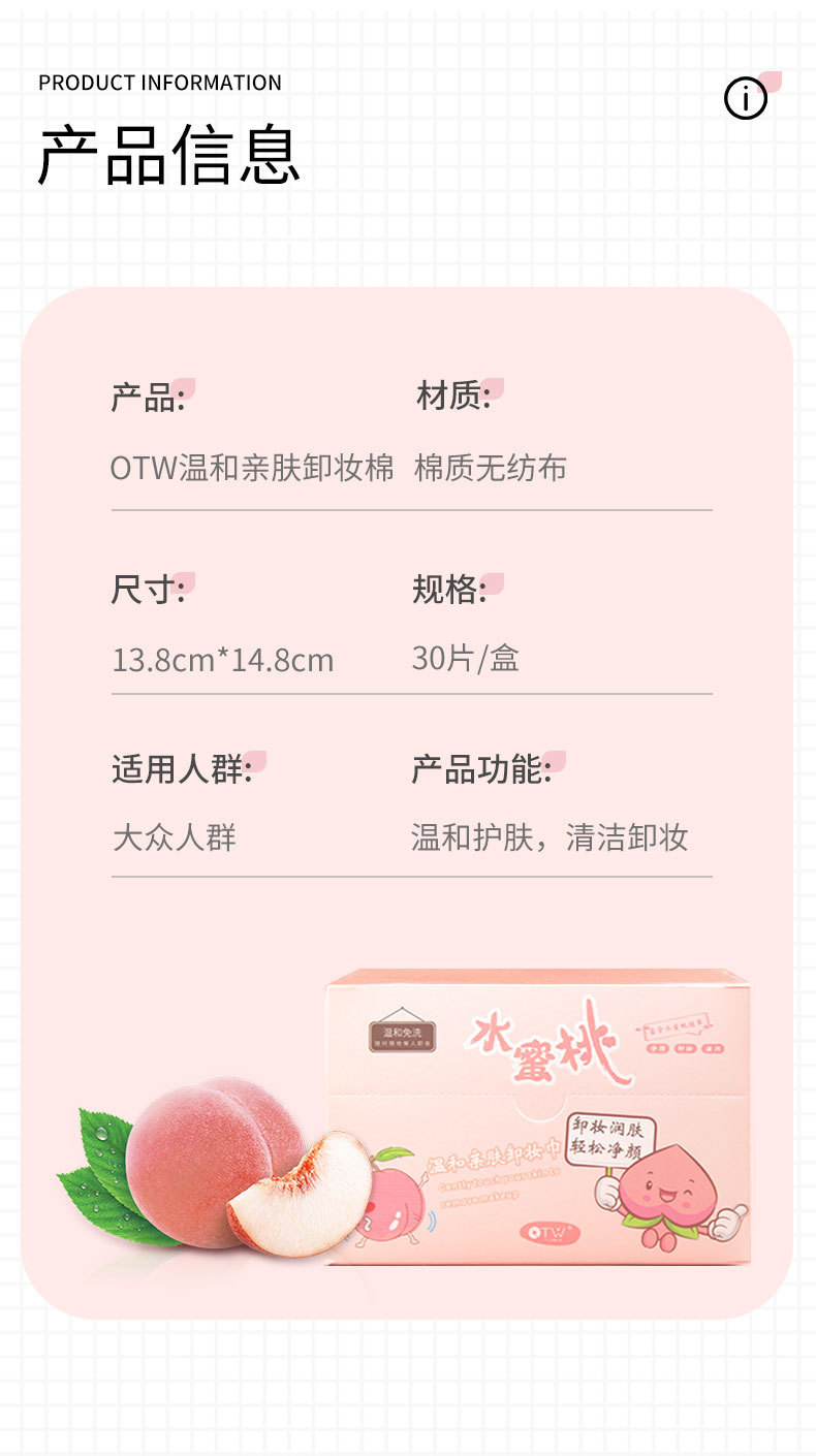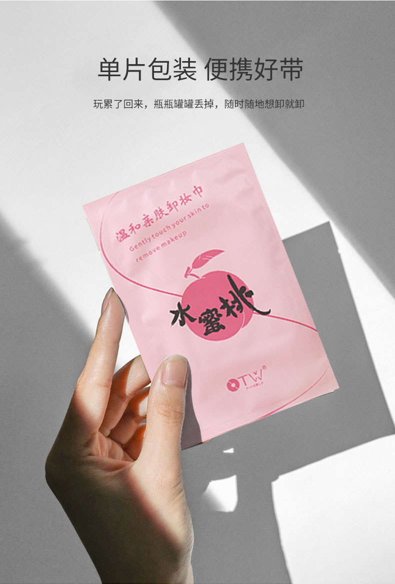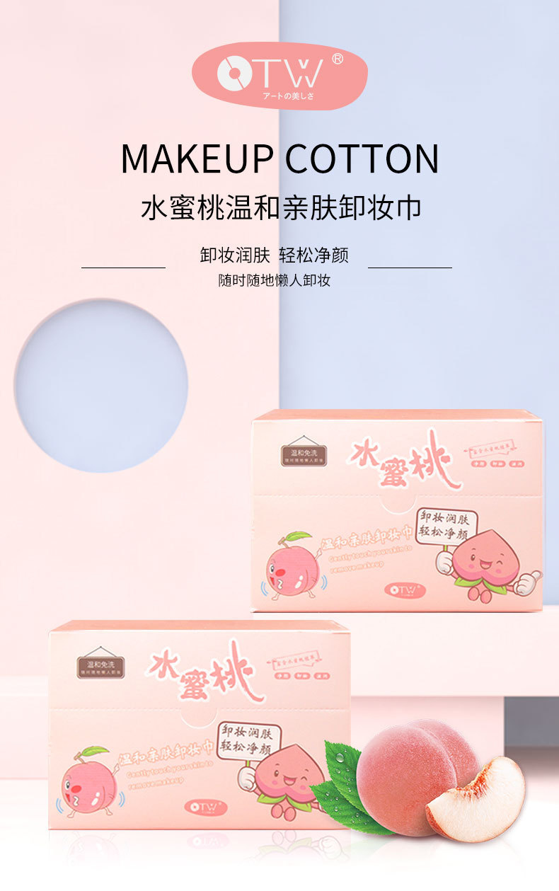 OTW 新しいピーチメイク落としワイプ個別包装保湿ポータブルマイルド使い捨てメイク落としコットンパッド卸売