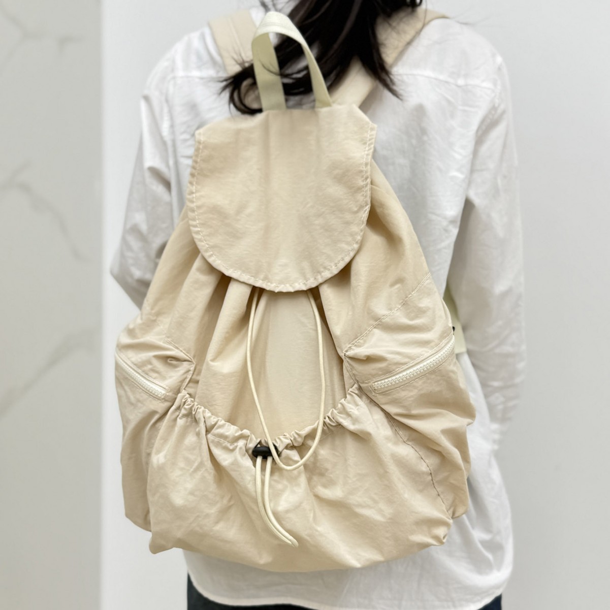 日韩休闲旅行女生褶皱双肩包新款轻便时尚大容量抽绳背包学生书包