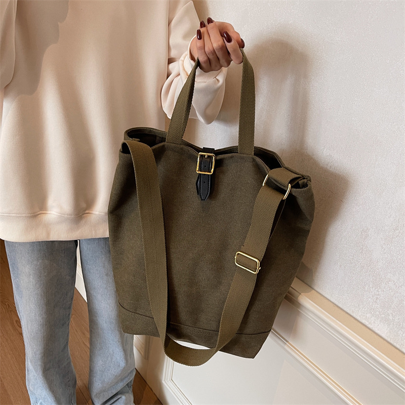 レトロキャンバスバッグレディース大容量カジュアル多用途ハンドバッグテクスチャーファッショナブルなシンプルなショルダークロスボディバッグバケットバッグ