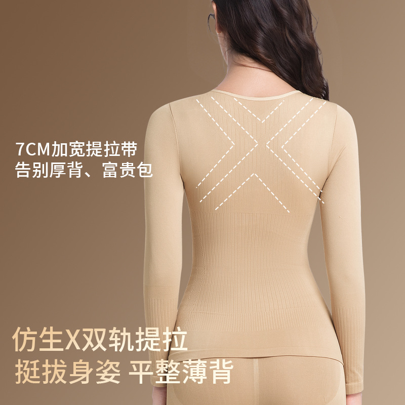 抖快热销保暖内衣两件套装女抗静电无痕圆领内穿修身保暖秋衣秋裤