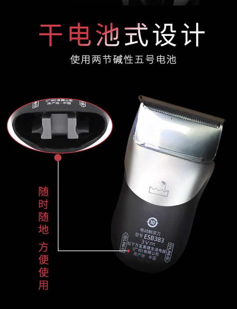 パナソニック电気シェーバーes3831 k干电池メンズ家庭用シェーバー小型ポータブル全身水洗い