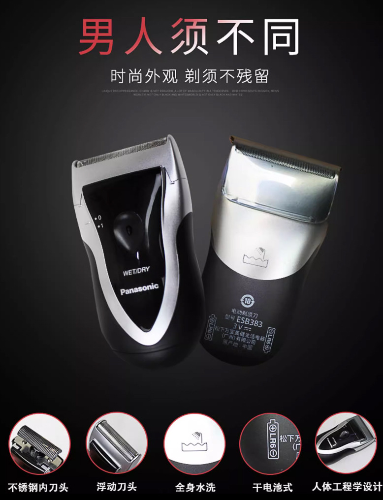 パナソニックシェーバーESB383独立フローティング干湿2剃り全身水洗い安莱精钢外刀