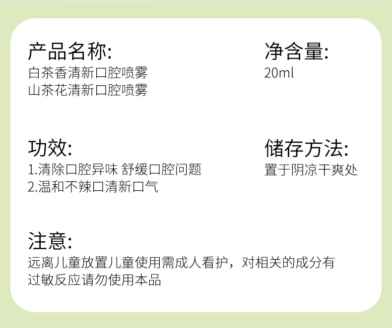 口腔喷雾口腔清新剂便携持久清新去异味山茶花口喷喷雾口气清新剂