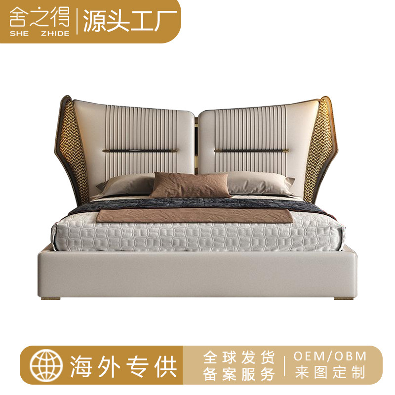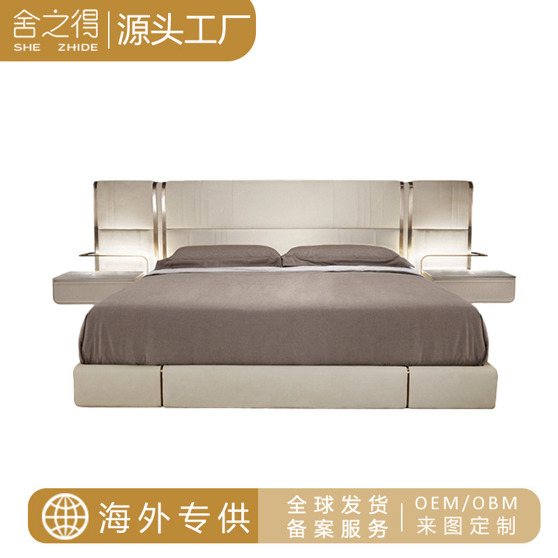 舎之得頭層牛皮真皮ベッド二人主寝台結婚ベッドクロスボーダー専用ベッド高級大型ベッド佛山メーカー