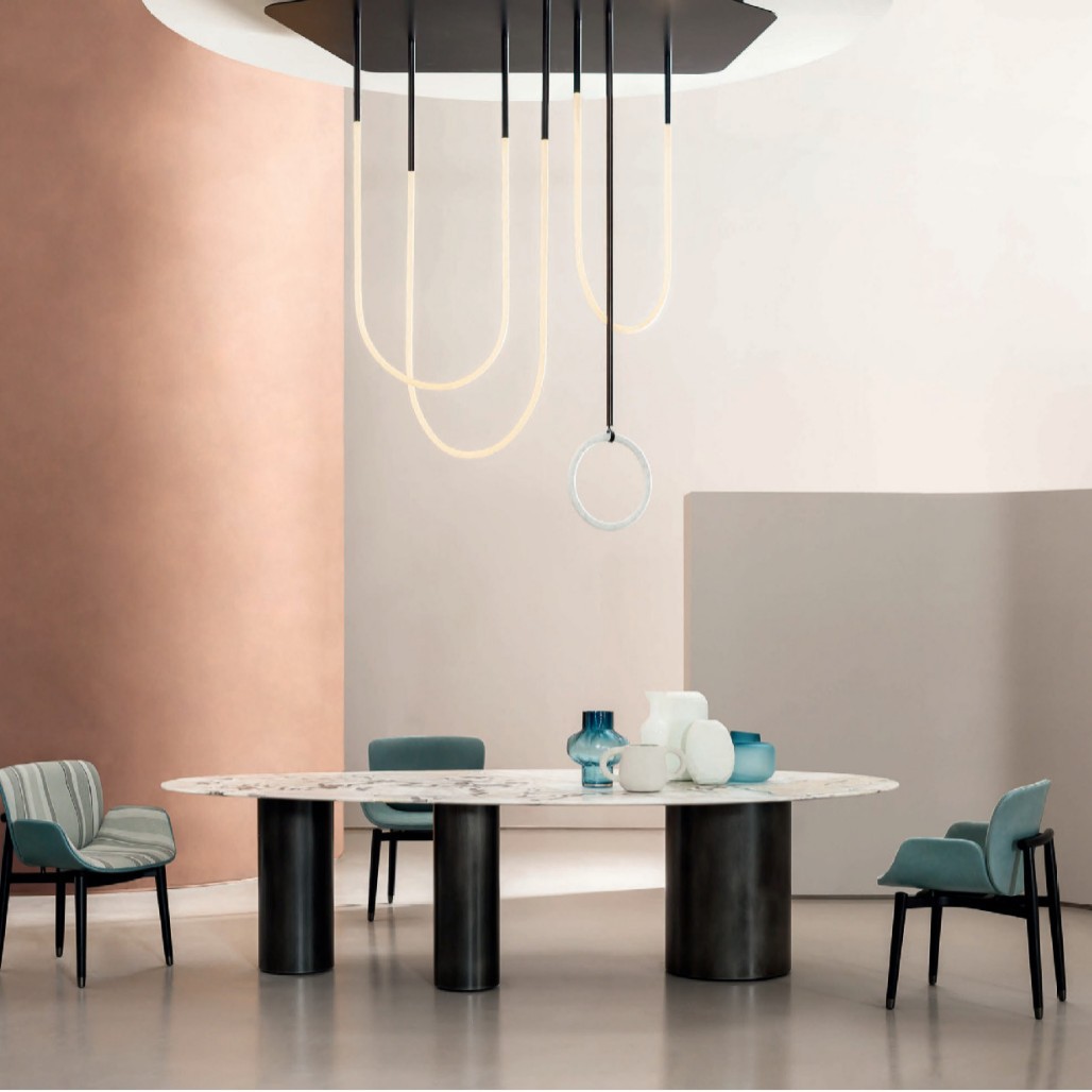イタリア製バクスター楕円形ダイニングテーブル パンドラ 高級石 イタリアンライトラグジュアリー 天然大理石ダイニングテーブル 高級石ダイニングテーブル