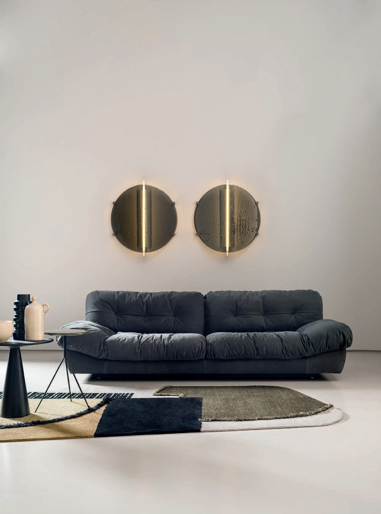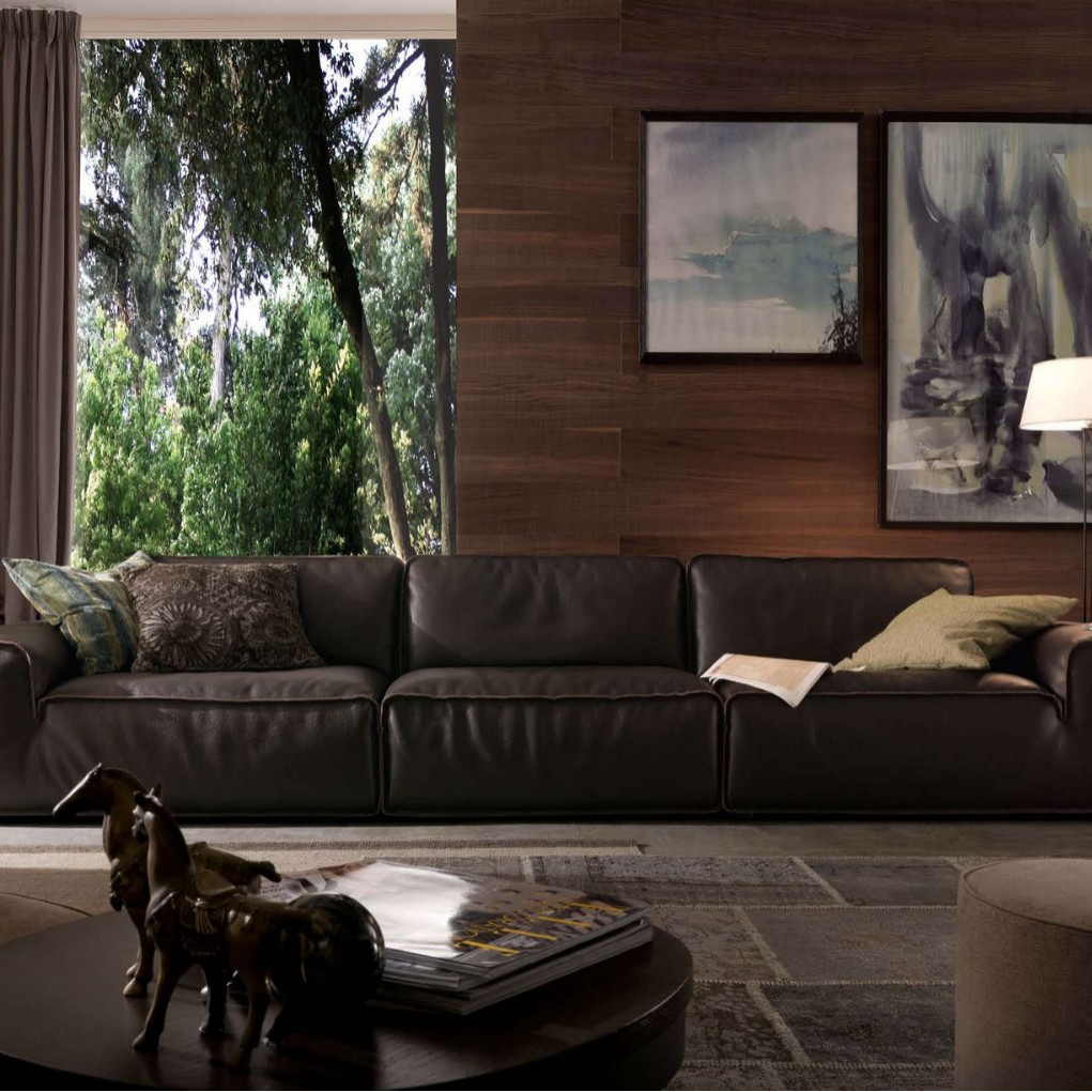 イタリア風バクスター羽毛入りソフトクラウド直列ソファ、軽奢フロストレザー布張り、高級住宅・別荘向けイタリア風軽奢
