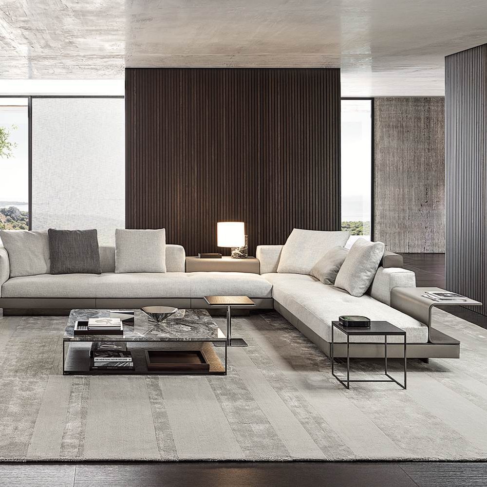 意式軽豪華Minotti綿麻布芸真皮客間シンプルL型コーナーソファセット大平層別荘