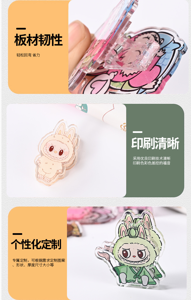 拉布布双面PP夹卡通手账夹子亚克力文具便签夹可爱创意屁屁夹批发