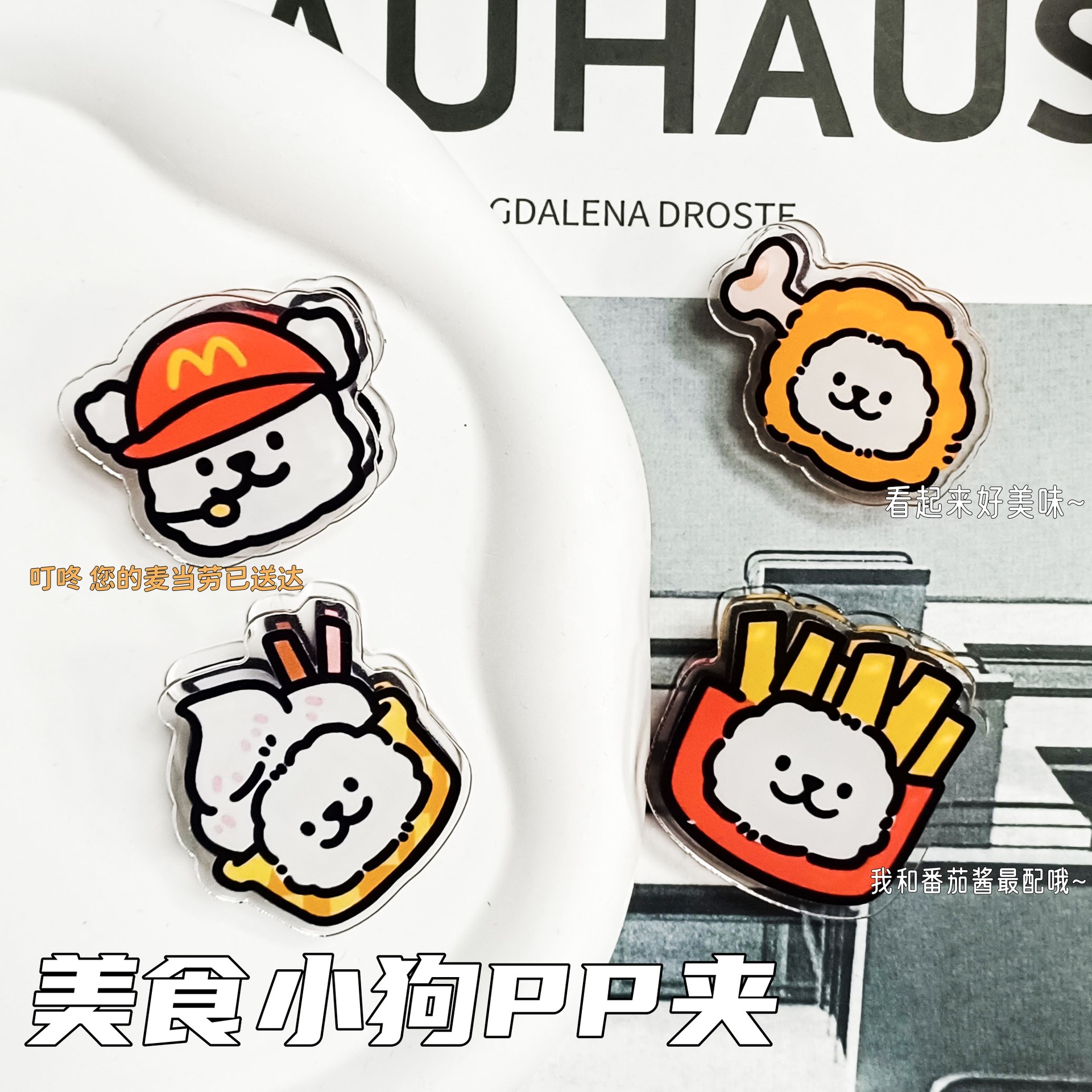 卡通美食小狗PP便签夹ins高颜值可爱学生收纳试卷亚克力双面夹子