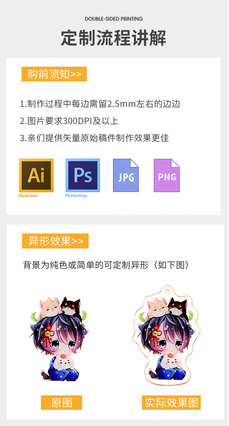 透明両面アニメ漫画アクリルキーホルダーカスタム二次元スター周辺ペンダント DIY 写真