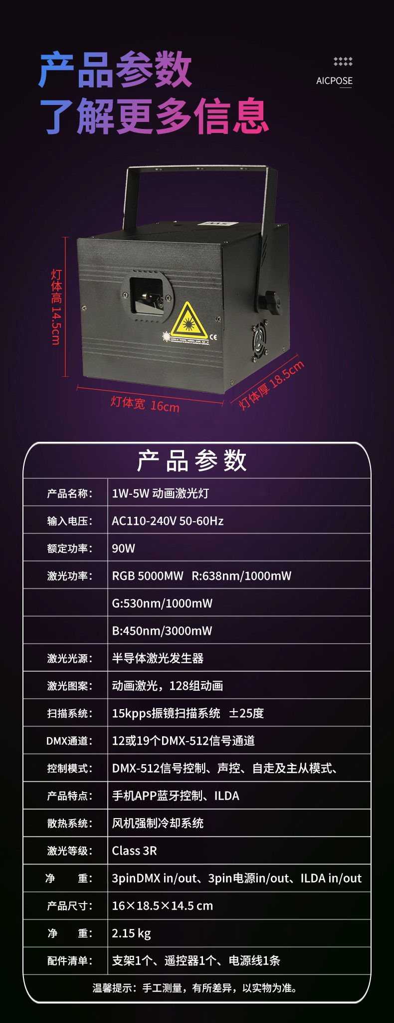 充电款投影5瓦5W蓝牙APP全彩激光灯户外灯光节音乐派对家庭氛围灯