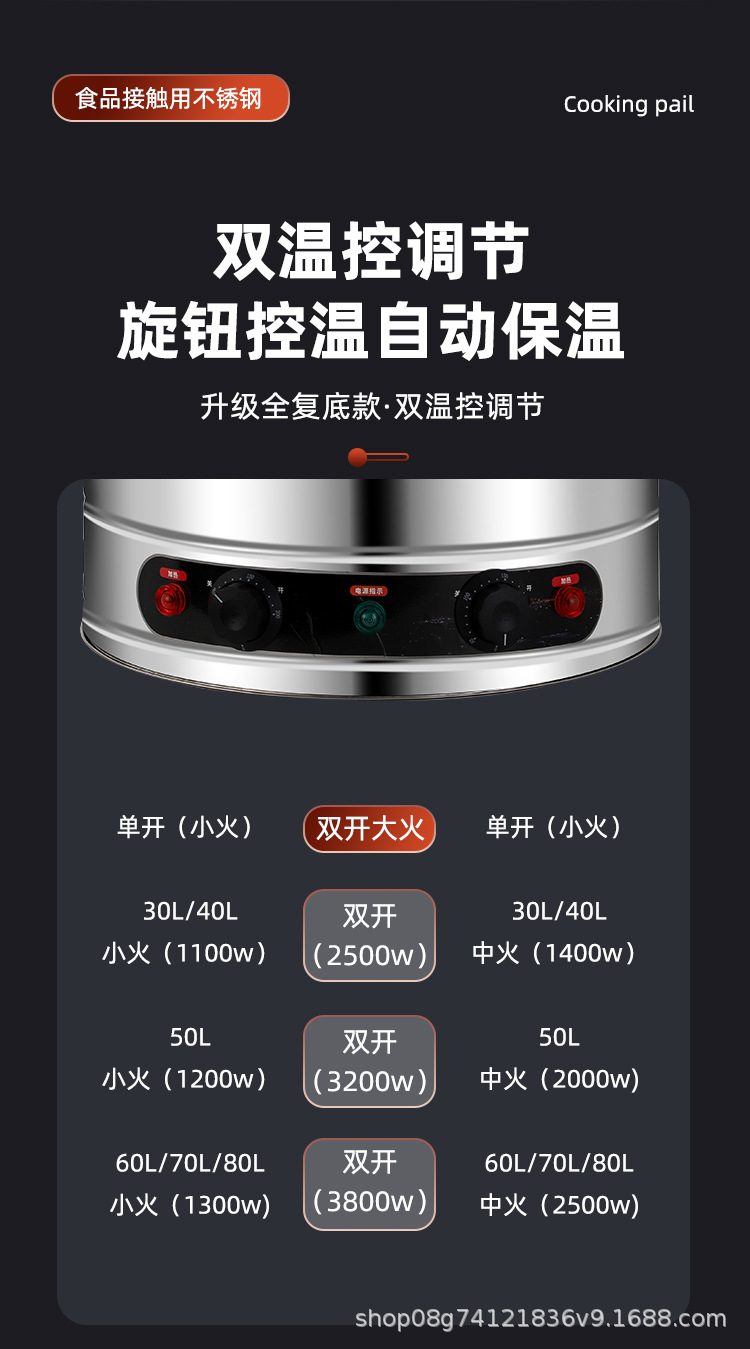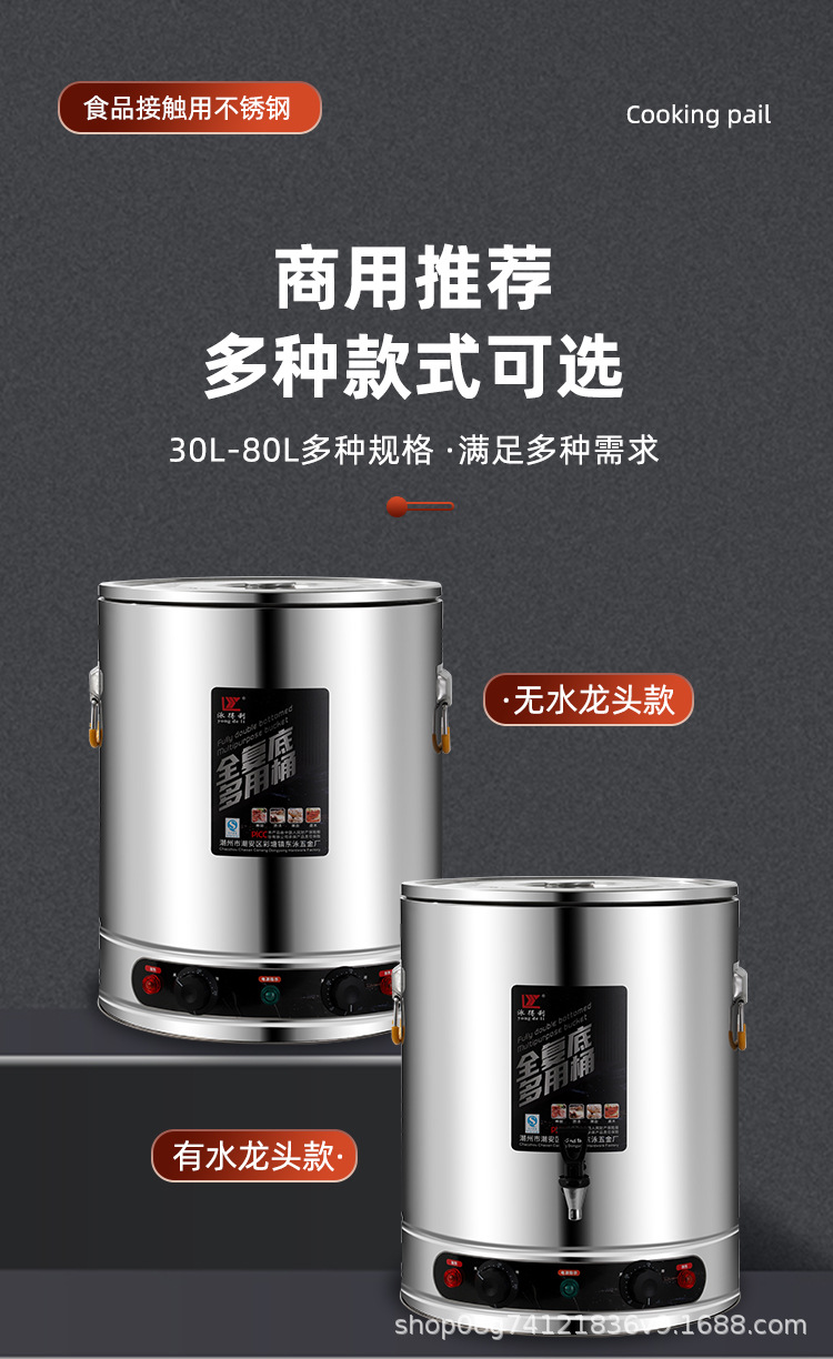 全復底蒸煮桶煮粥電熱桶大容量商用露店恒温かん水煮湯湯桶保温桶