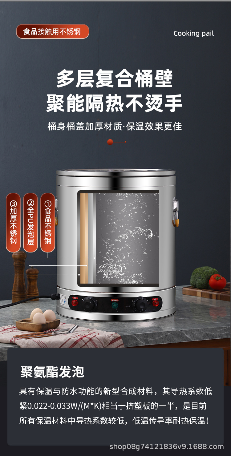ステンレス製二重断熱電気加熱調理桶 業務用ステンレス加熱保温桶 大容量電気加熱湯桶